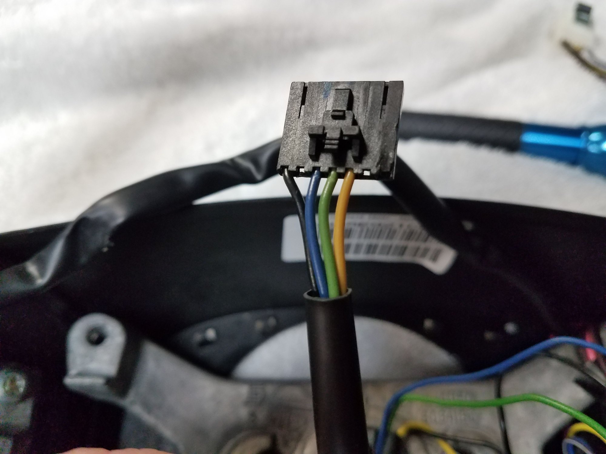 OK so these are the two wires Blue & Green I need to find where they go. When I bought the steering wheel it was like this.