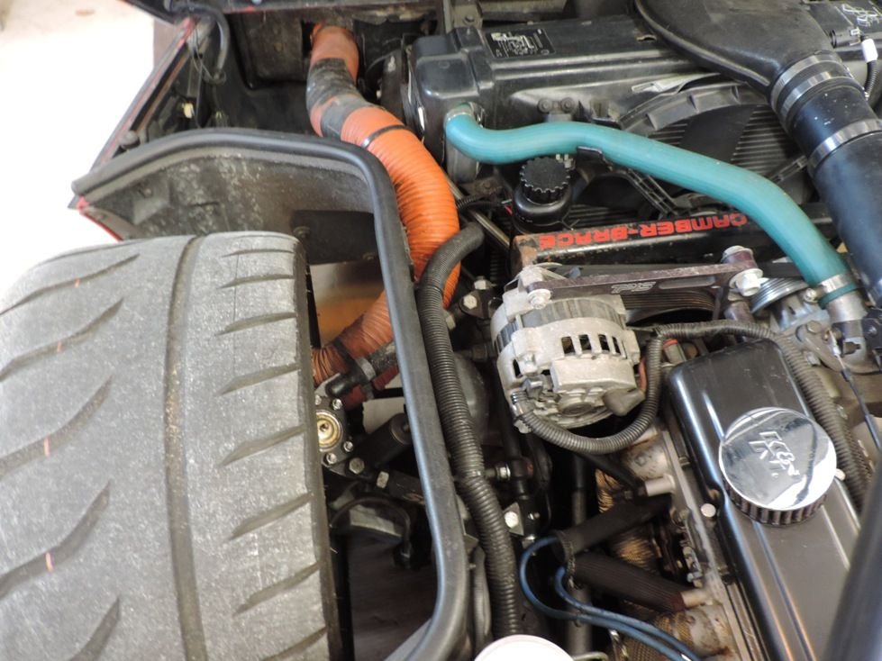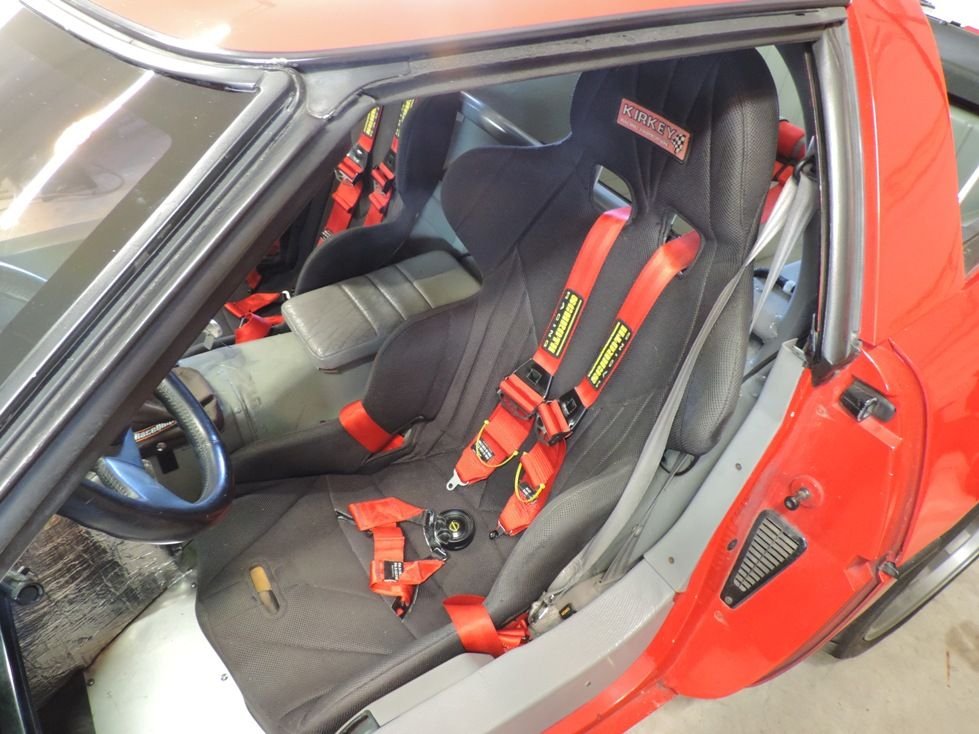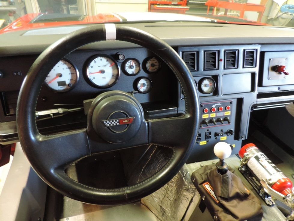 Body/interior/safety: 1988 Z51 coupe; fixed headlight conversion; TrackSpec hood vents; interior, a/c, heater blower gutted; Rippie “chassis brace” 4-pt roll bar welded in; VetteAid analog dash; Kirkey aluminum seats with back braces; Schroth 6-pt cam-locks (expired); stock seatbelts still in place (for street); Halon extinguisher mount; DIY CoolShirt setup. Paint is 90% original and looks good, has some scratches on passenger side door and rear quarter. Stripes and numbers are removable vinyl.