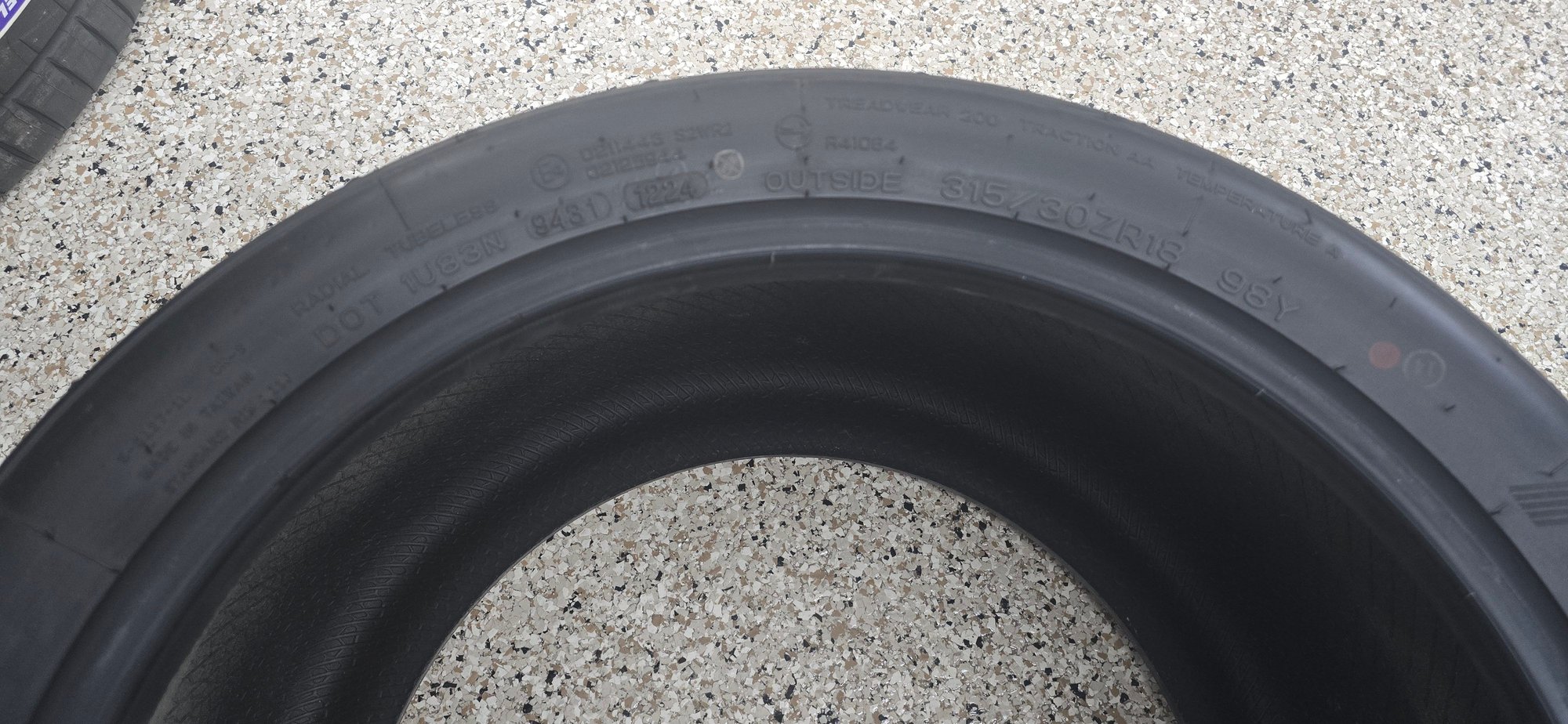 Purchased new in January 2025 from Tire Rack. Used for 5 - 20min sessions at CTOA. I'm selling because I'm moving on to A7's when I install my AP Racing brakes. One of the 335's had a repair from a nail.