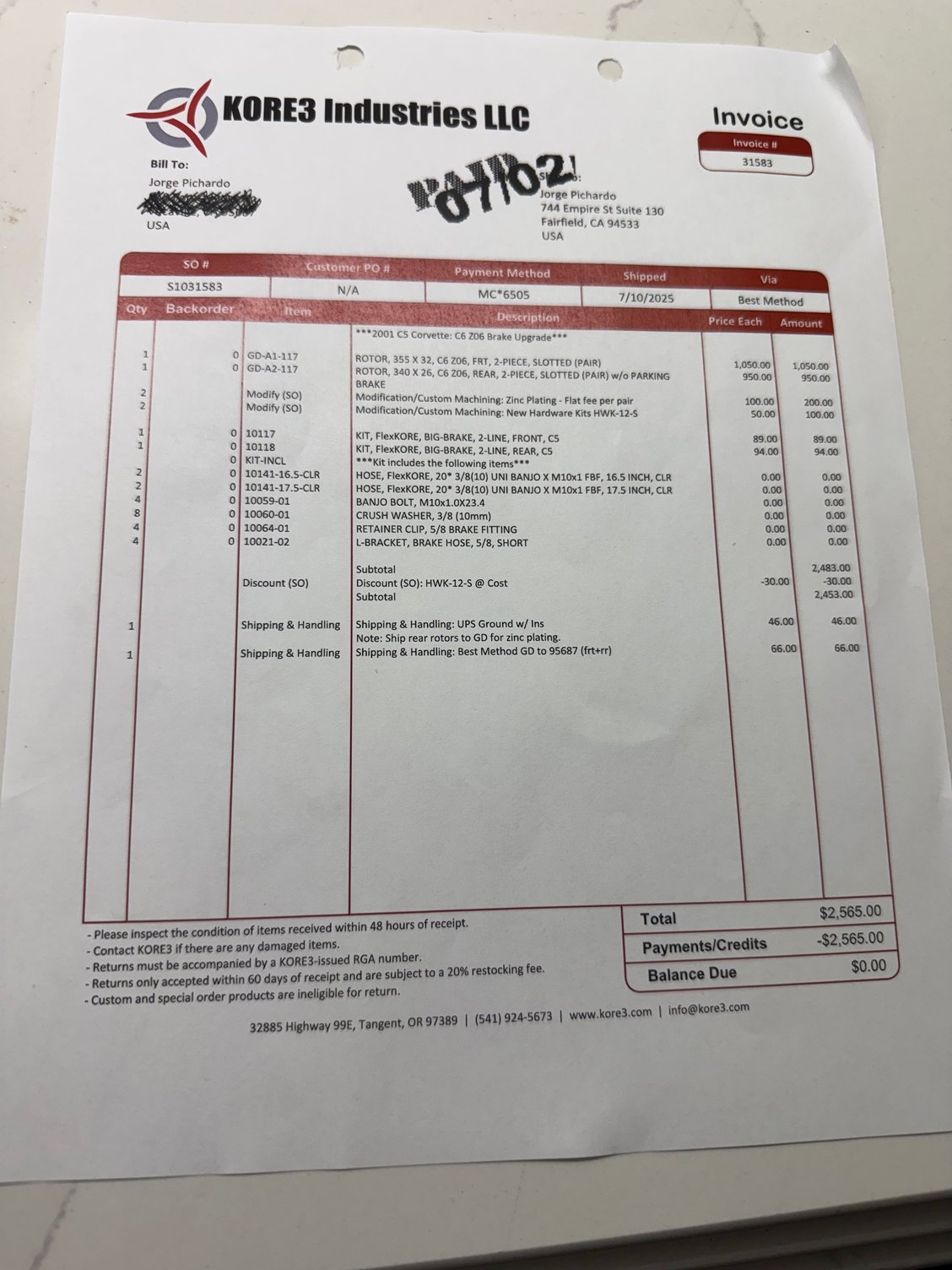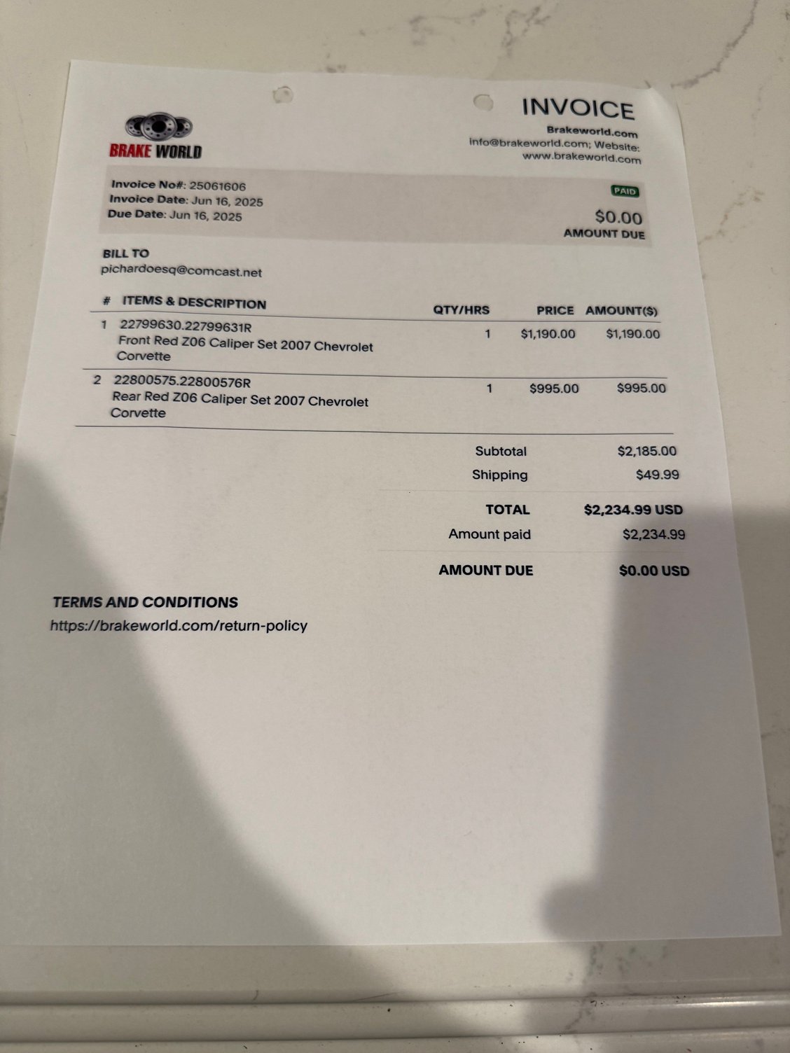 1950 shipped for calipers