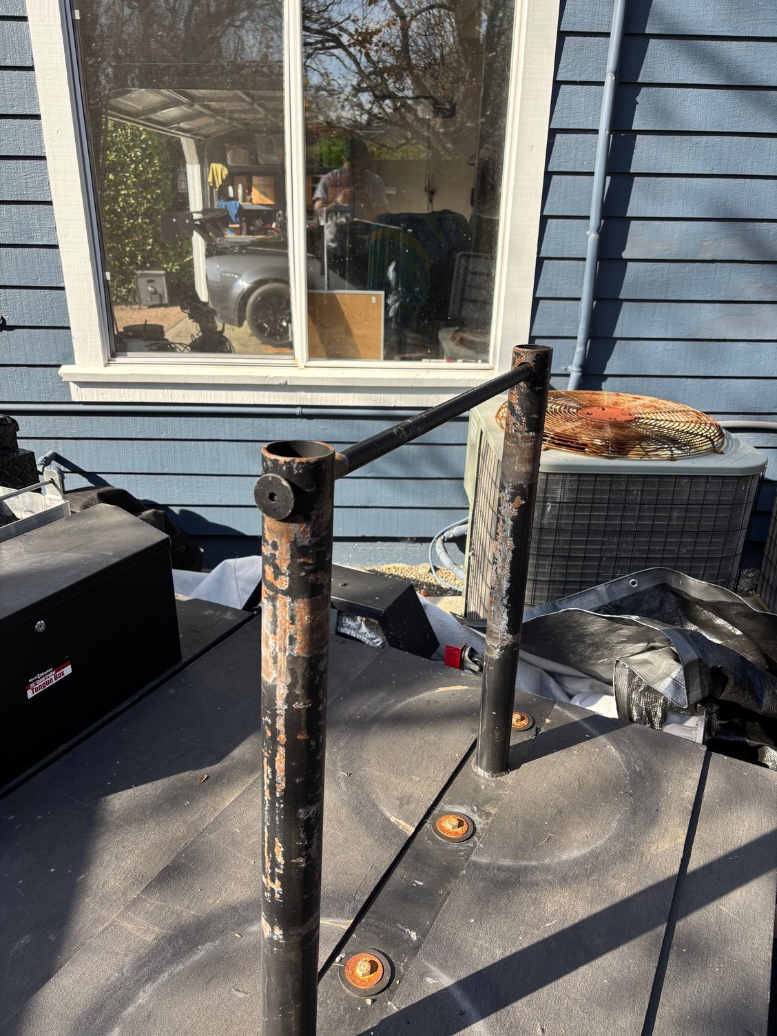 Custom tow hook / cradle / hitch / ball. Bolts directly to former leaf spring location.