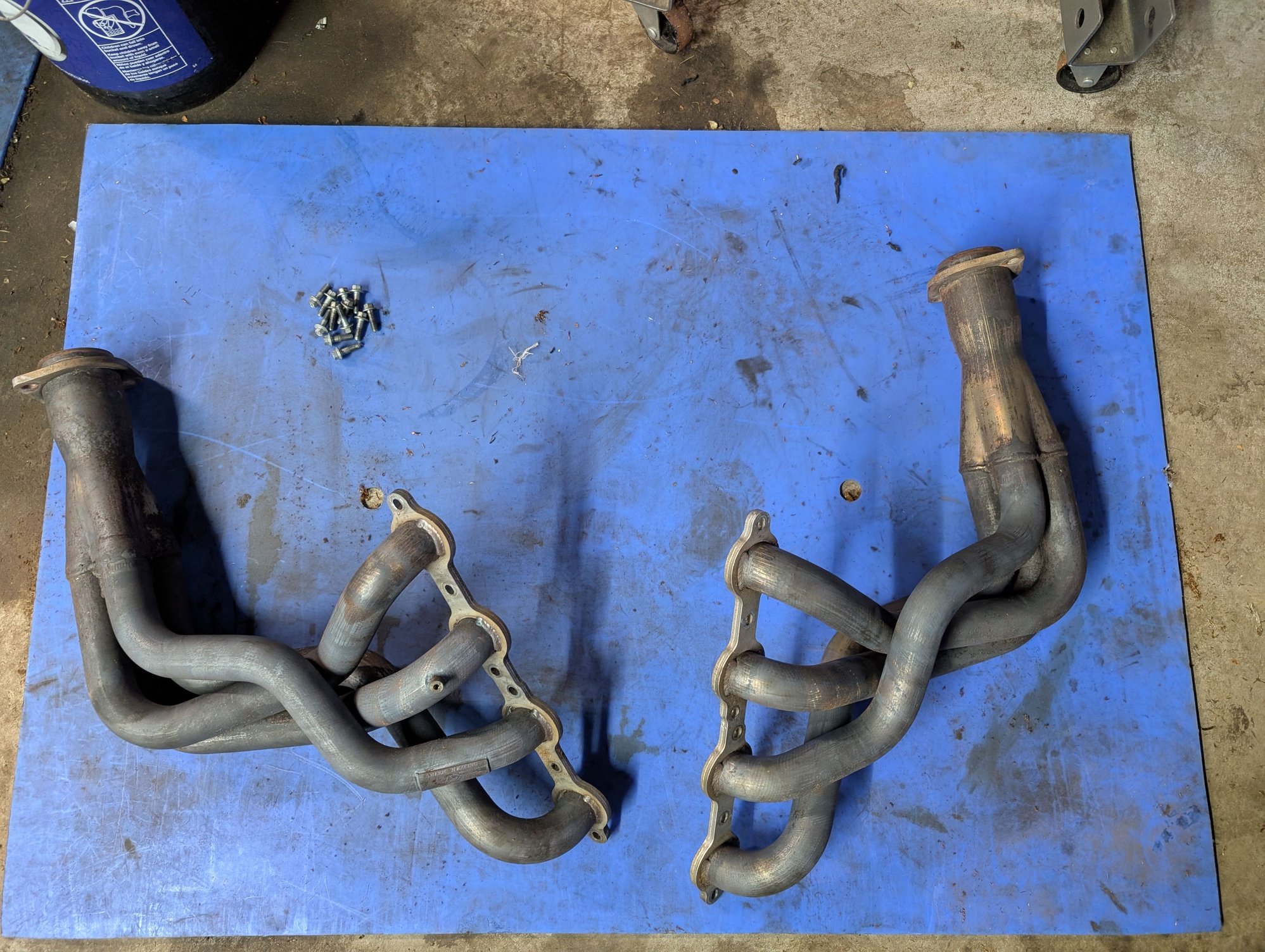 These are American Racing 1-3/4", long tube headers only (no x-pipe), and bolts included. Good condition with no leaks or issues. The driver side tubes had a short conversation with the ground at some point, but it's not bad.