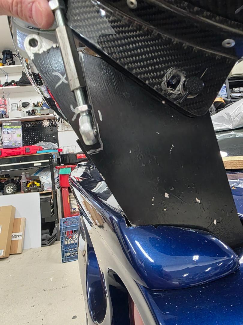 I determined the amount to mill based on the wing at 0 and 18 degrees (the extremes of the APR speed table for this wing) but 18 seems like an awful lot and likely will cause binding issues with that lower ball end as the wing angle gets adjusted to 0.