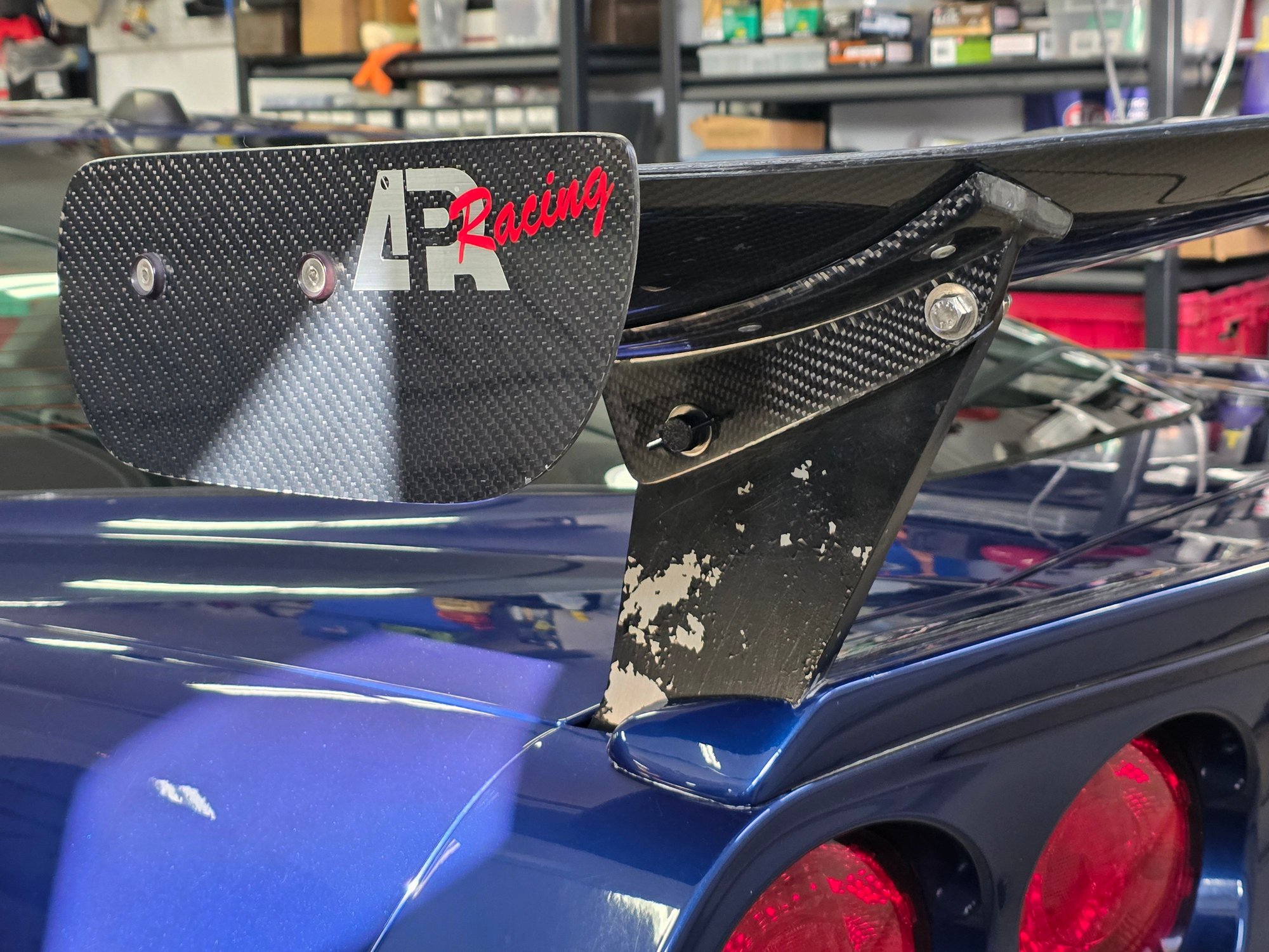 I bought my C6 with this APR GTC-500 wing atop of custom alum pedestals that go thru the rear bumper cover and mount to the rear bumper bracket.