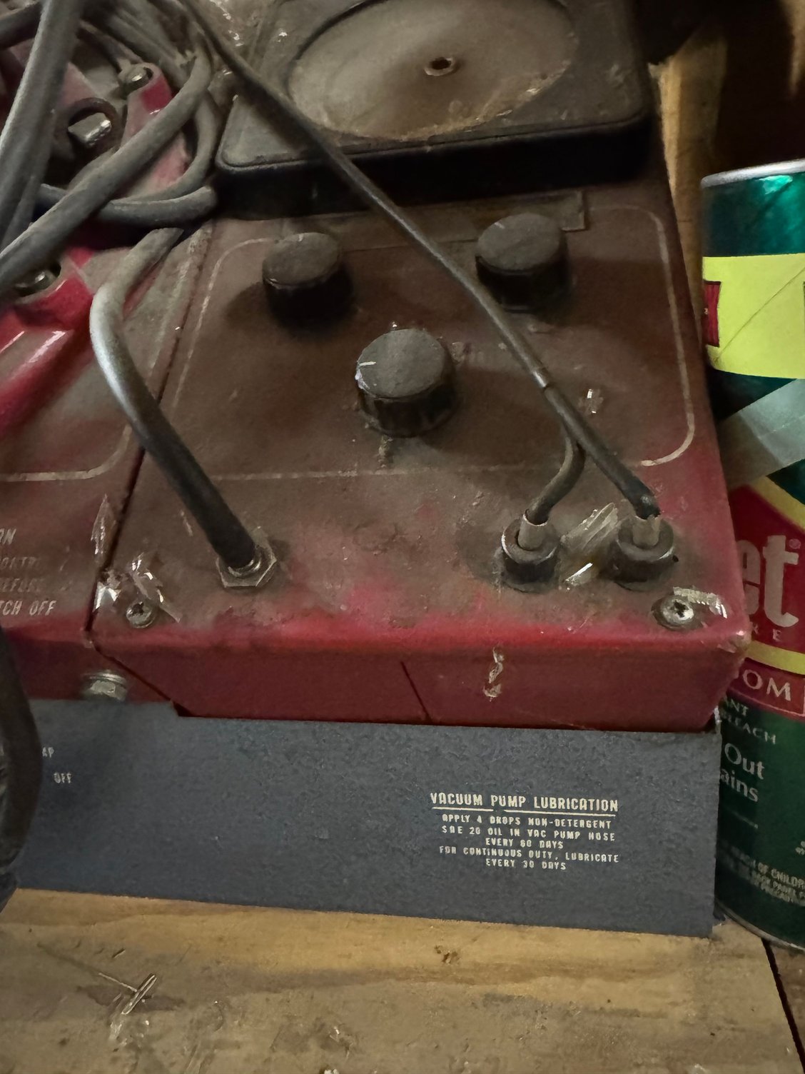 For people who want to restore an original Sun machine, I think the newer 504 model is a better choice than the really old ones like mine and the one you were looking at. On the machine you were looking at, the two oval plastic covers on the lower left are for two 1.5 volt D-cell batteries. In addition to the two D-cells, you need a 6V car battery to run the electronics and a 120 V power outlet to run the motor. That's four different power supplies to operate the machine. The newer 504 models got rid of the two D-cell batteries, and if they still used a car battery too, it was likely a 12V battery (I do not know much about the newer machines).