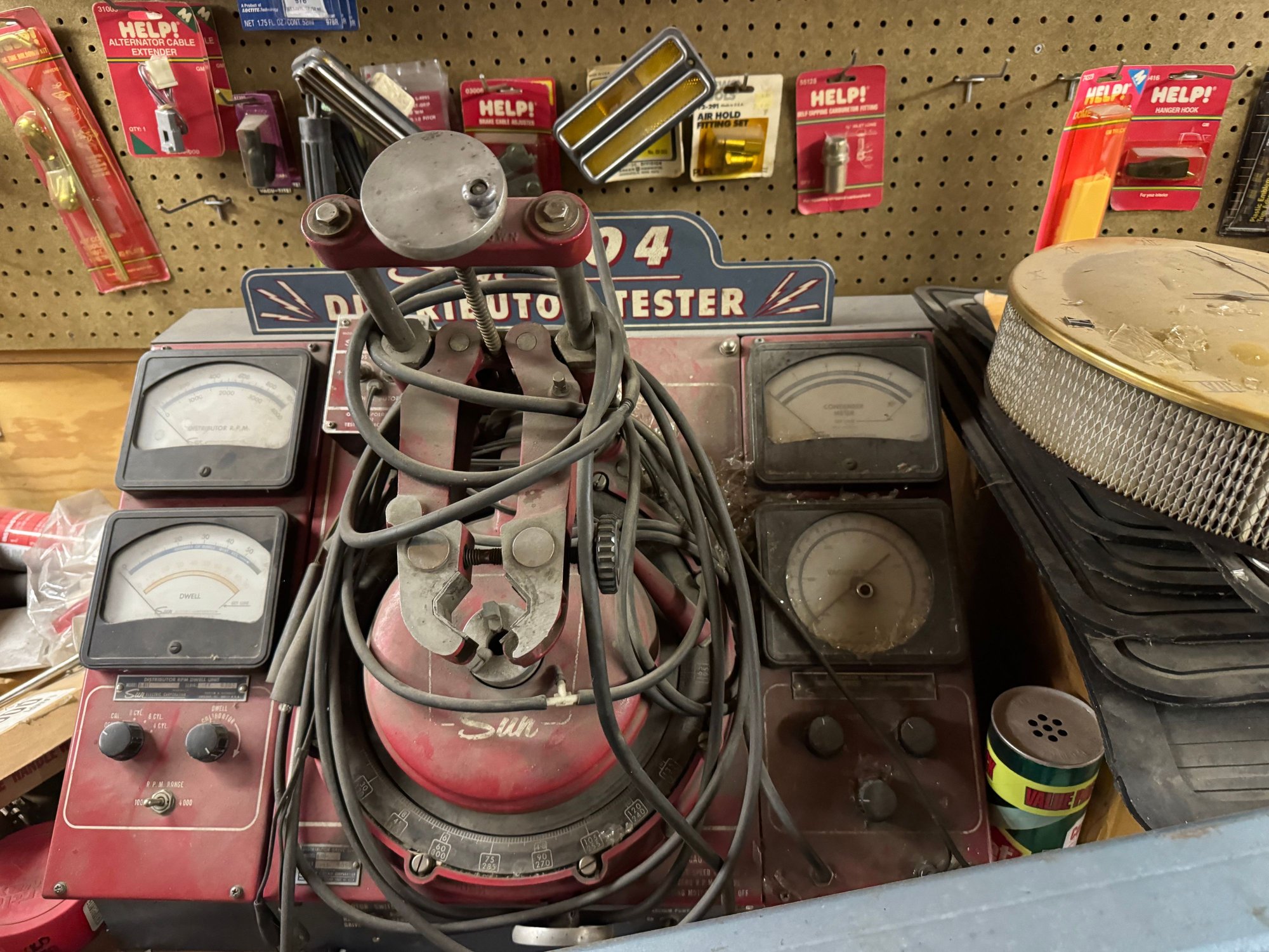 One thing to look for; My machine used a rubber wheel that rode on a metal disk to drive the distributor. When you are done you are supposed to raise the rubber wheel off of the disk. Otherwise the wheel develops a flat spot, which makes the machine vibrate badly. I never checked for parts, so I can't speak to availability . What I did was turn the rubber wheel down beyond the flat spot which cured the vibration, but changed the rpm readings IIRC. I got around this by hooking up a mechanical tach , since I was working on corvette units. This gave me the correct rpm readings to adjust the curves.