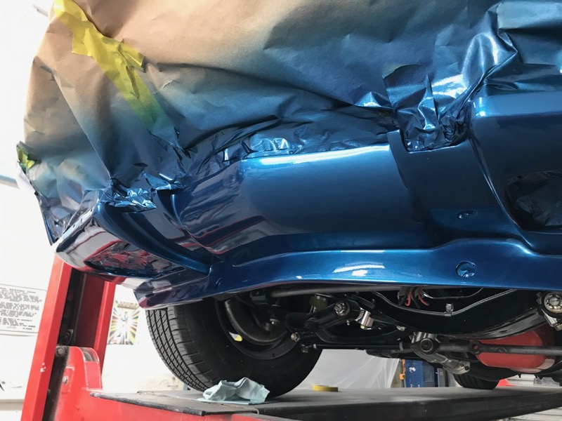 He had focused on getting the front apron prepped and shot while the car was higher so he could get as good a finish as possible.