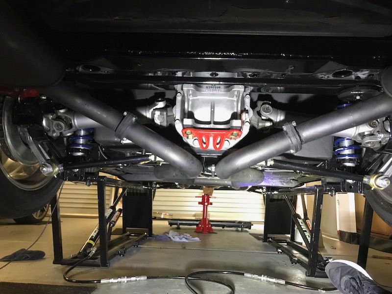 - VanSteel coil-overs, offset trailing arms with johnny joints, QA1 dual adjustable shocks