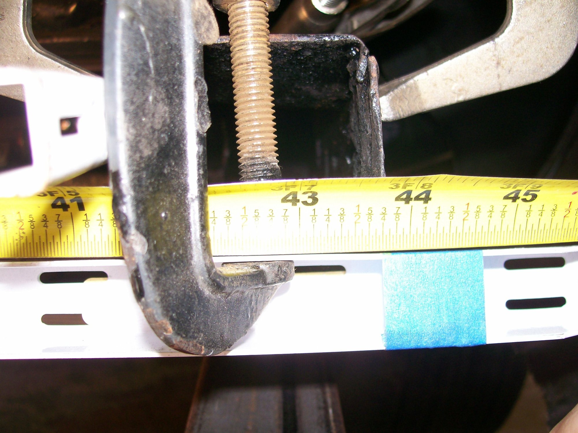 The frame rails are 43 & 7/8"apart........I will pull the passenger rail Inboard 1/8" to get the 43 & 3/4" frame measurement before I weld the crossmember in place.......