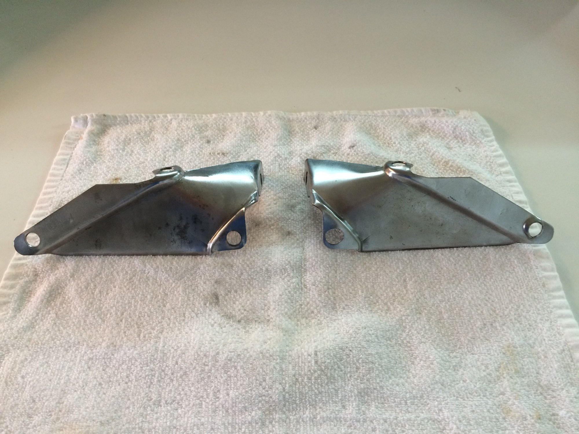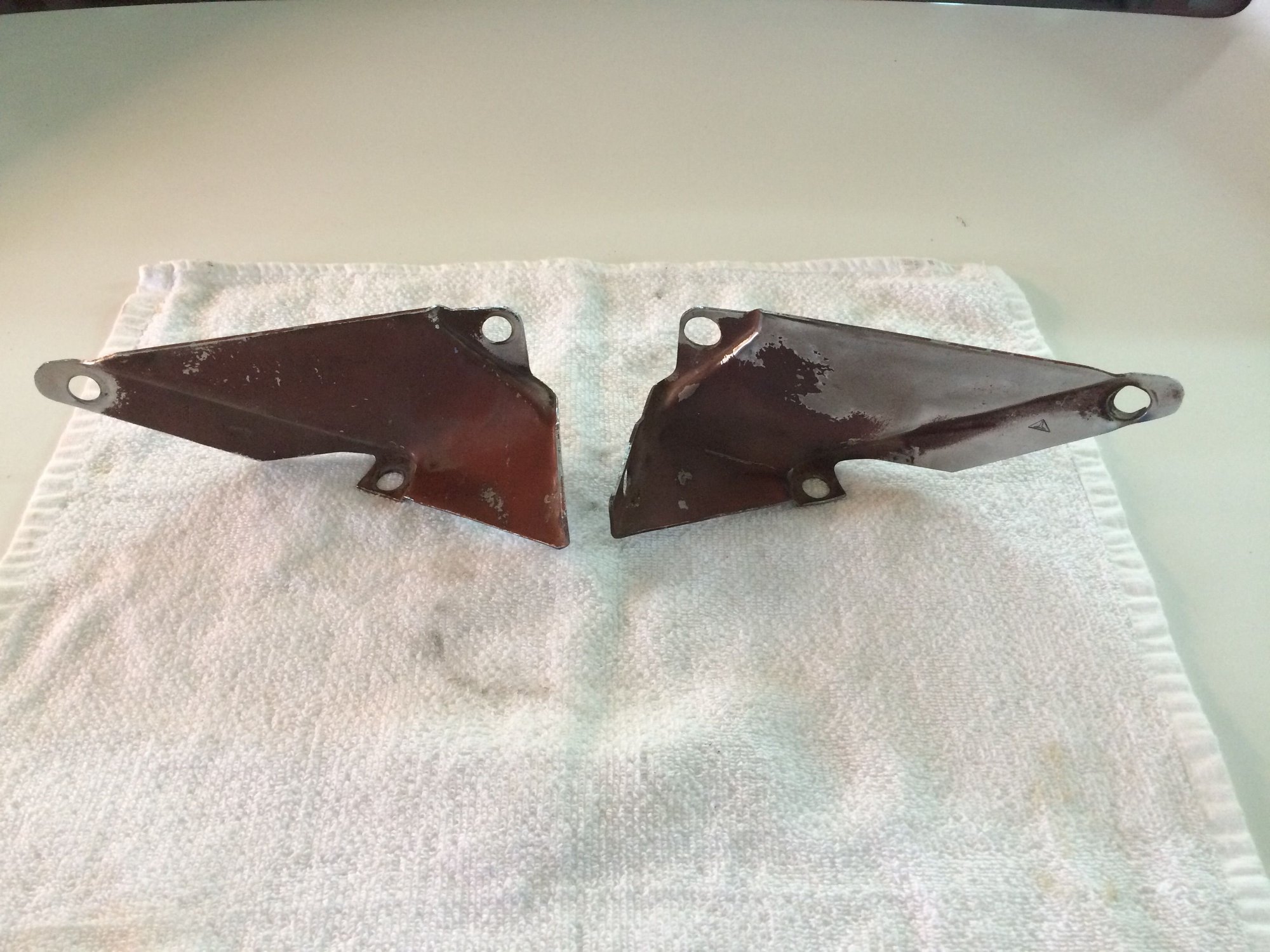 I've been going through bins and boxes pulling out and cleaning parts for my 68 vert since it'll be back from the body shop soon. I found these brackets and can't figure out what they are and where they go. I'm hoping someone here can help me ID them. They are left and right brackets and are painted the body color on the inside. Thanks in advance for any help.