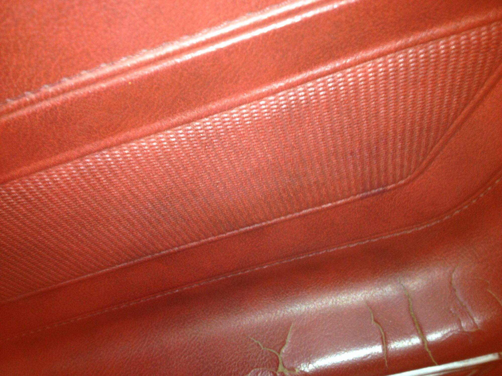 While all of the current reproduction door panels I see have some degree of the 'comfort weave' detail in the vinyl, none of them are nearly as distinct as it is in the original door panel vinyl.