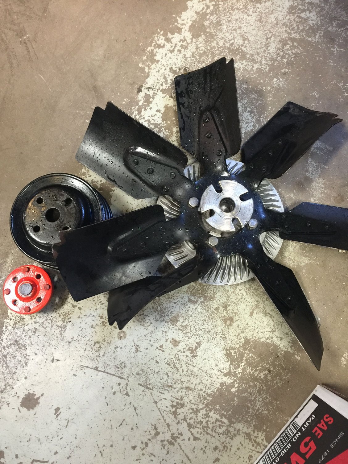I got a call from a friend this morning, not good news, I had my '74 in his garage for some cam & lifter work along with a new water pump and the news this morning was the shaft on the new water pump snapped and did more damage while it was at it, , bent the fan and clutch base in turn caused the fan to go into the radiator while breaking the shroud..
