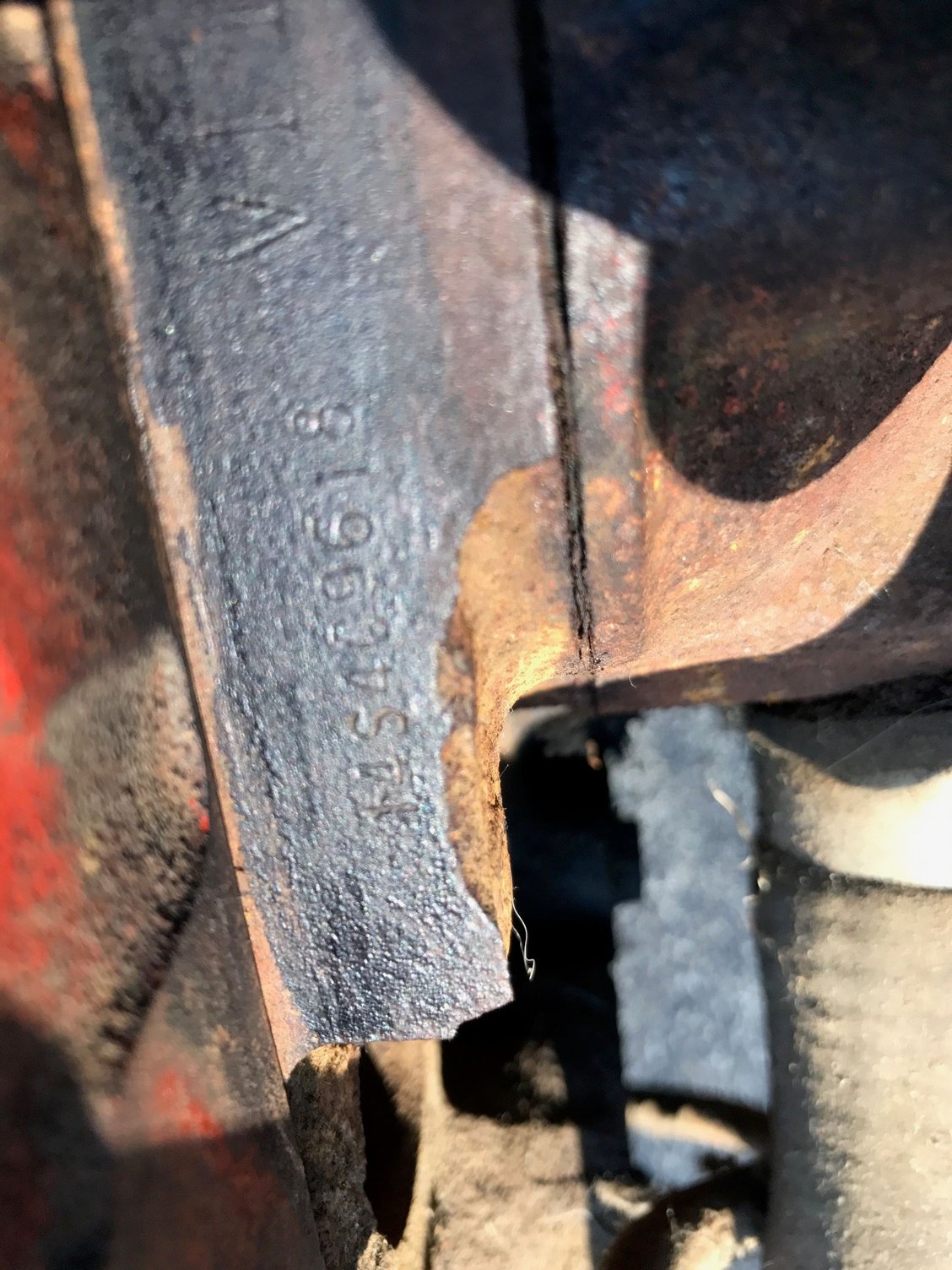 Cleaning the paint and grease off of the engine pad will make things clearer.