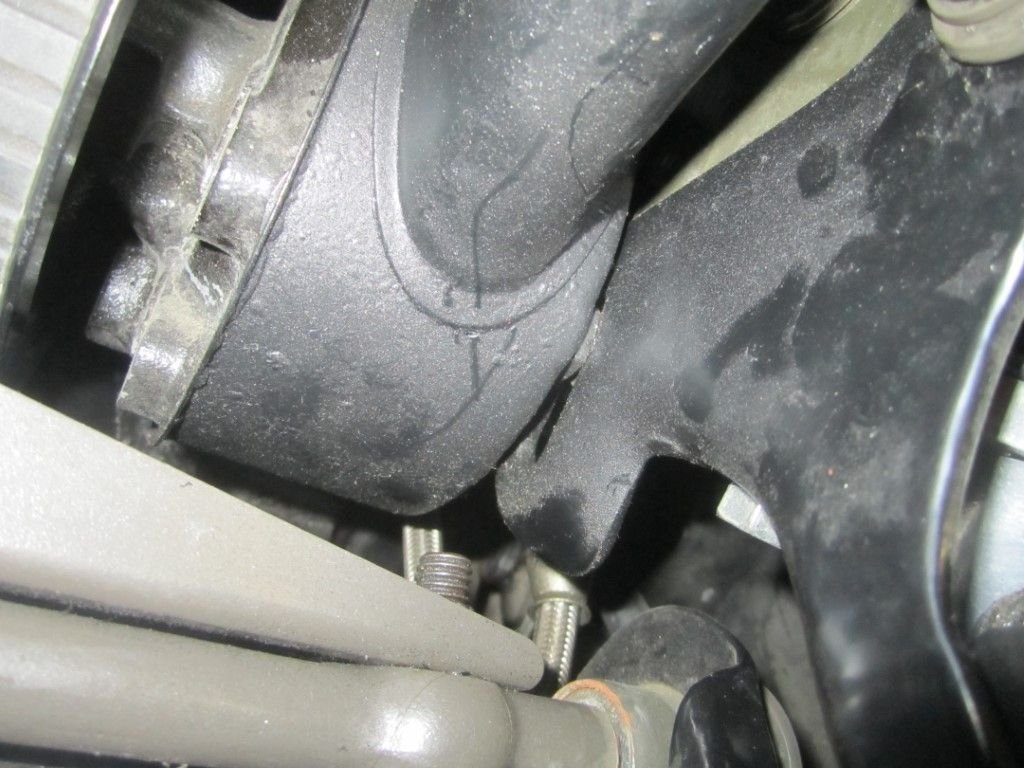 Two bottom bolt & nut need to be loosened a little so it'll pivot. Bolt on the front and nut on the rear stud (bolt and nut are not on here but you can see where it would be, bracket has a slot in the rear