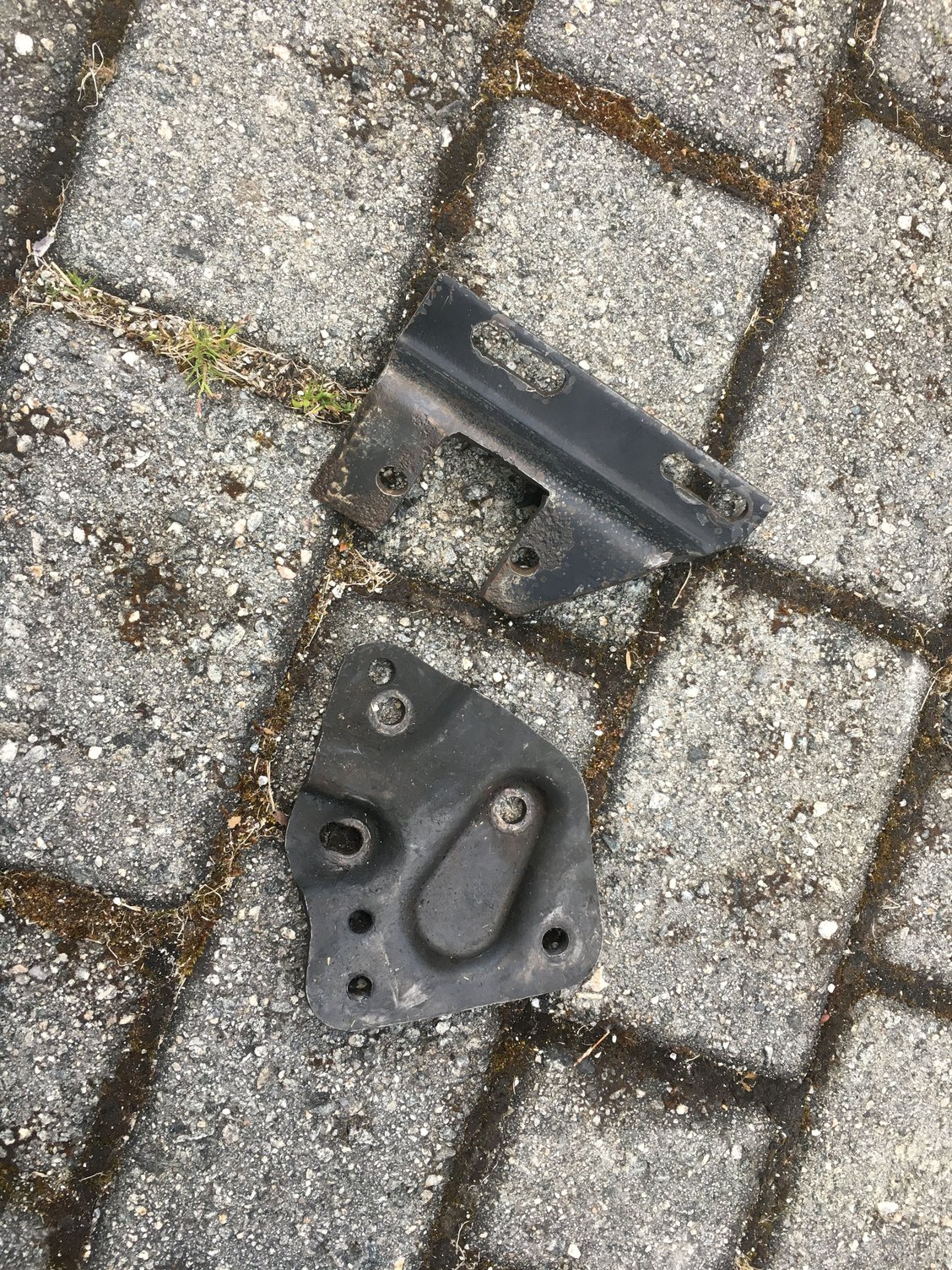 the top one with the two holes and two slots is the alternator mounting bracket. the two holes are mounted to the cylinder head around the header tube. there should be a double "L" bracket that mount to the two slots and the alternator is mounted to that.