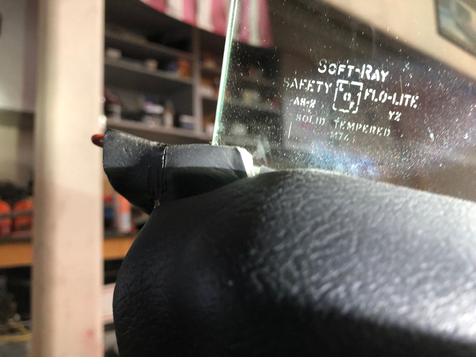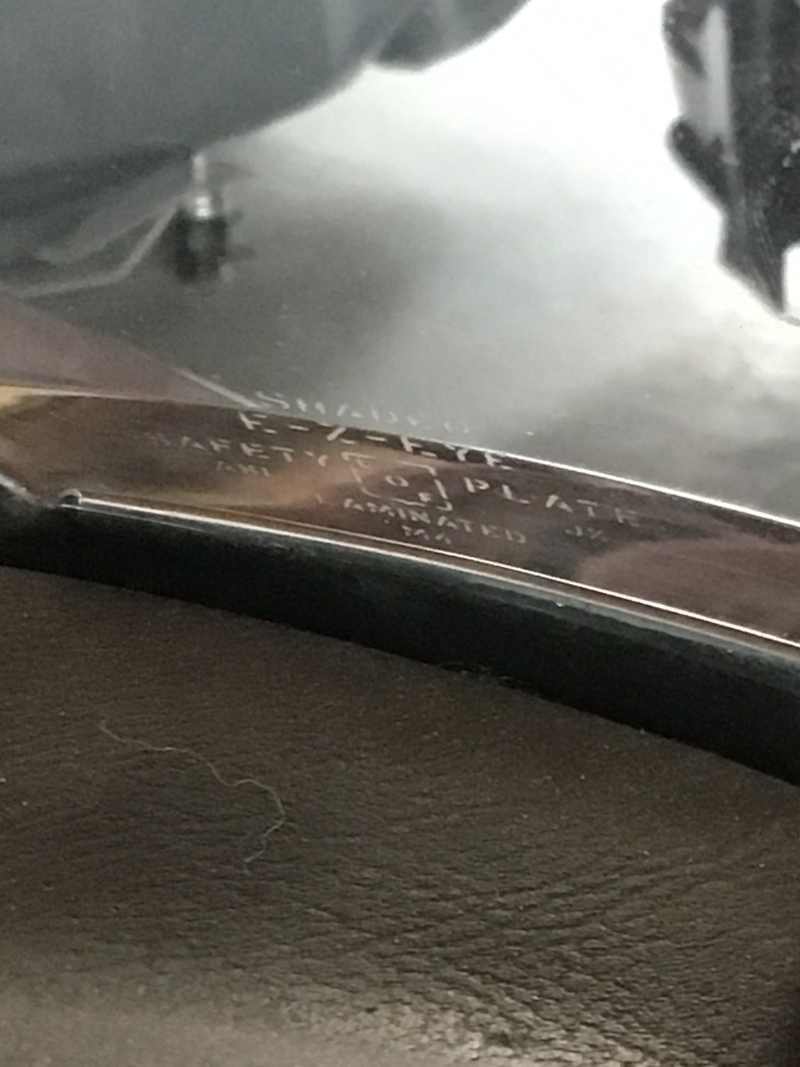 Your glass has been replaced. A production windshield wouldn't use the wording Shaded E-Z-Eye, it would have been Shaded Soft-Ray, or Shaded Soft-Ray Tinted.