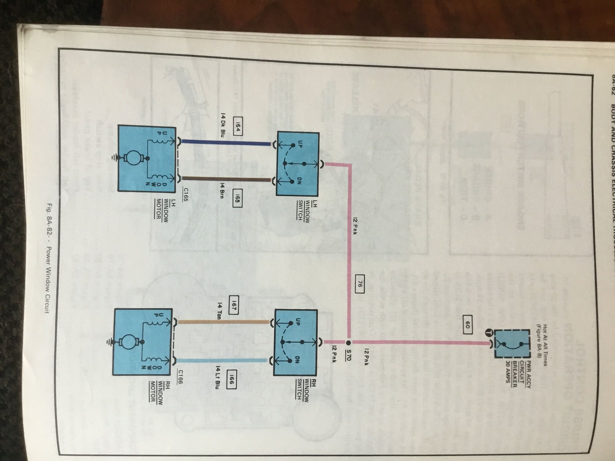 When trouble shooting, if neither window operates, look for faults in circuitry common to both window motors and the 30amp PWR ACCY circuit breaker in the fuse block. 1979 shop manual