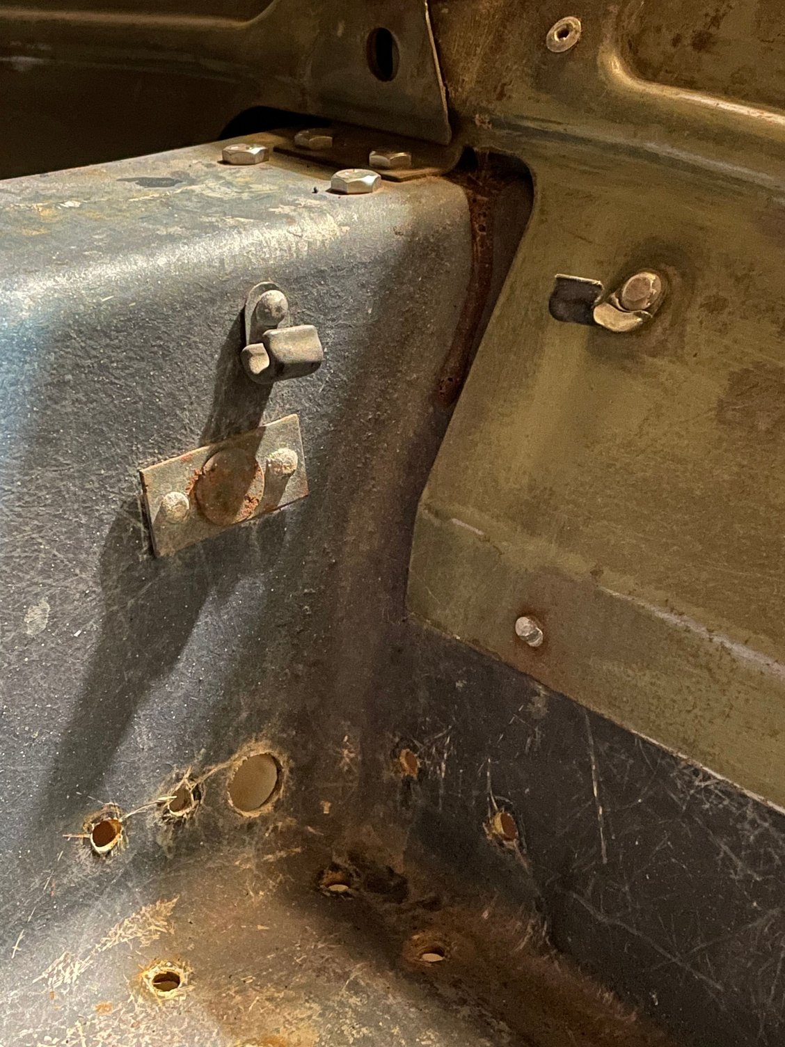 After looking at this, I am starting to think there’s nothing wrong with the OPs car. The area behind the “hole” is just dead airspace. Not exposed to the elements, covered with carpet. Clean, treat and paint the rusty metal and move on.