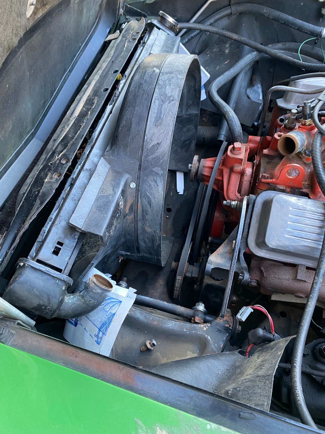 I recently bought this 75 convertible after a long 35 year sleep. In the process of waking it up I'd like to replace the bushing in the upper A-arms. So I have a spare set of A-arms built ready to go in the car. I figure I can get this done along with my coil over install over the weekend,WRONG! I've been working on my cars for as long as I've been driving basically and I can honestly say this car is really kicking my ***. The fan shroud needs to come out in order to get the A-arms off the car but the shroud won't come off unless you take out the radiator. The radiator is easily removed once you take the hood off.as stated I'm more than capable of working in the car,I've got a 91 ZR-1 inch hat in the only one that works on the car, this picture is changing the injectors on a car with 8000 original miles-thanks GM- but this 75 is really working my nerves.