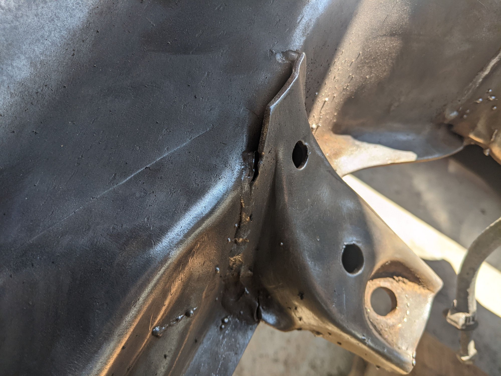 The whole front of the car is covered in welds like this, and while they're not what I'm used to seeing from production welding (I work in aerospace) I agree they are perfectly strong and will do the job. I guess I'm like the typical 1970s GM customer, because I also won't be looking at the welds once it has paint on it and the engine is back in. Thanks again for the replies!
