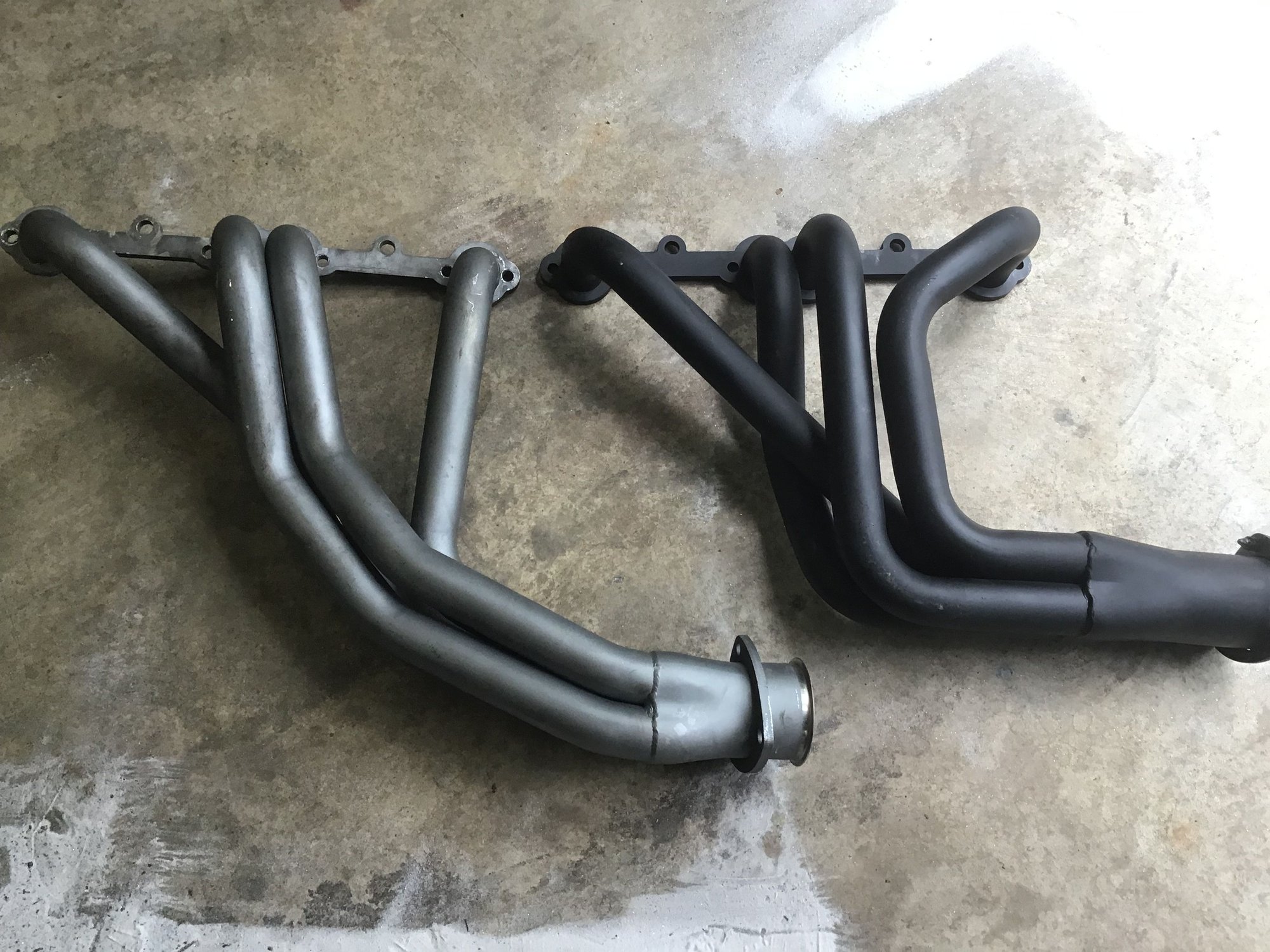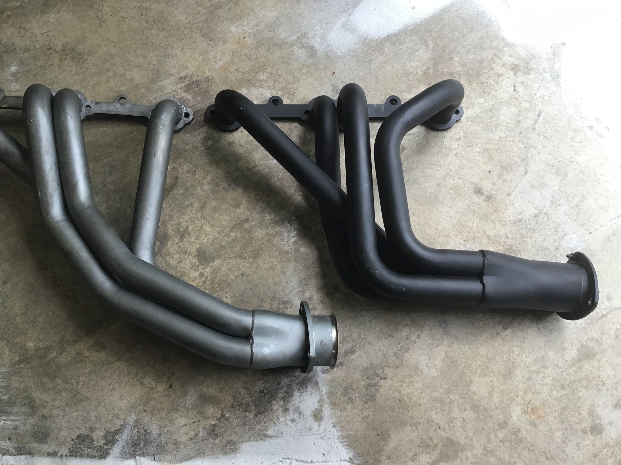 The black ones are the new ones from Summit Sum-G9003.and as you can tell,they are shorter,and have already checked fitment and they line up perfect to existing pipe. They come black but they do say that these are temporary paint,that they will burn off,So,I’m going to ceramic coat them.