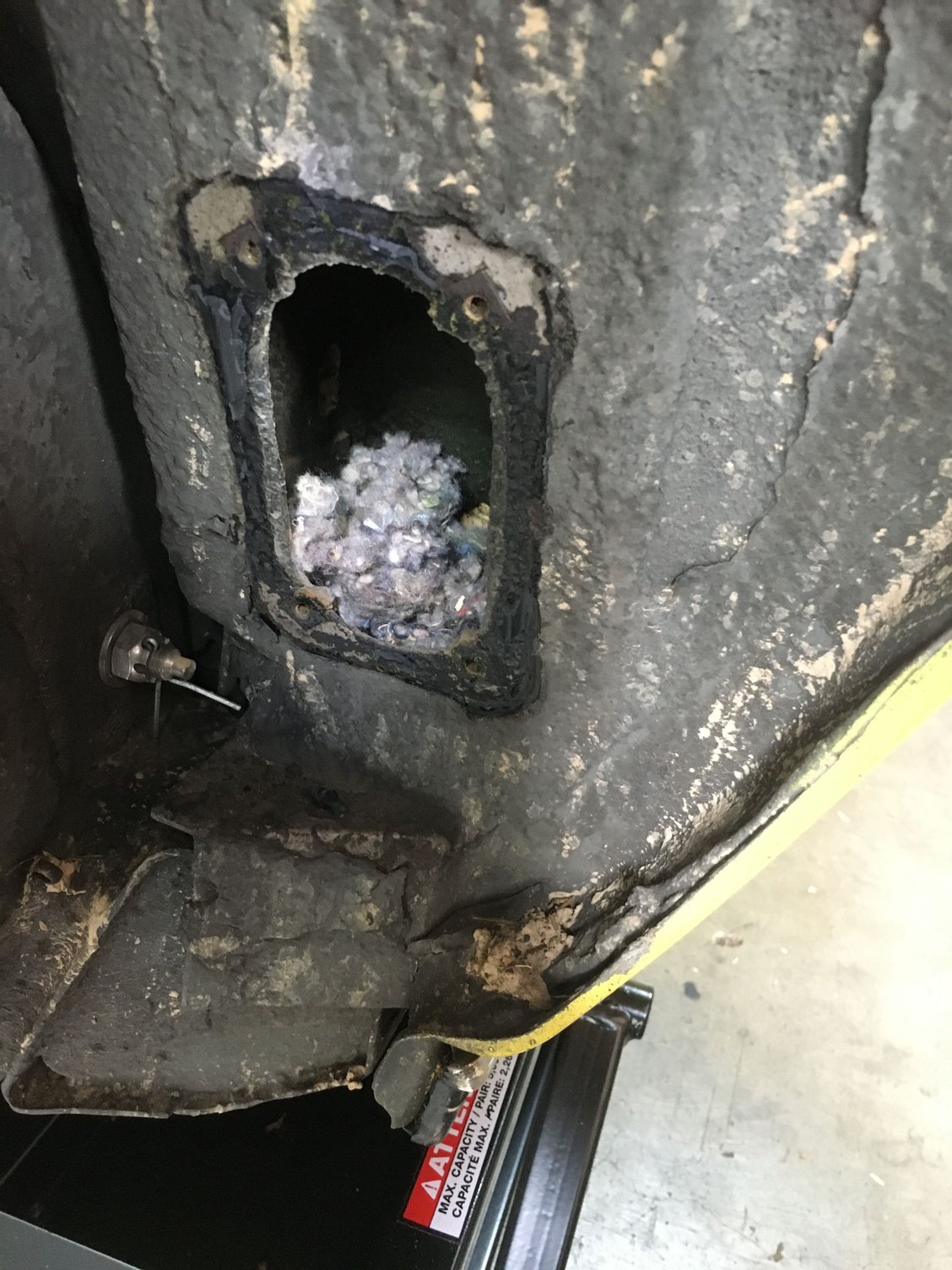 Thanks; 78’s no longer had a switch there, but the description gave me more perspective on where the mice came in. On checking those pockets on my other car I noticed an even larger opening along the bottom rear, it goes to the outside right across from the T-arm bolt. The other car also had little 1/2” thick strips of stiff foam rubber filling in that gap behind the body mount. Now I’m imaging mice parading around the inside of the frame with another nest somewhere deep in there. I should probably check with tube stuck on the end of the shop vac.