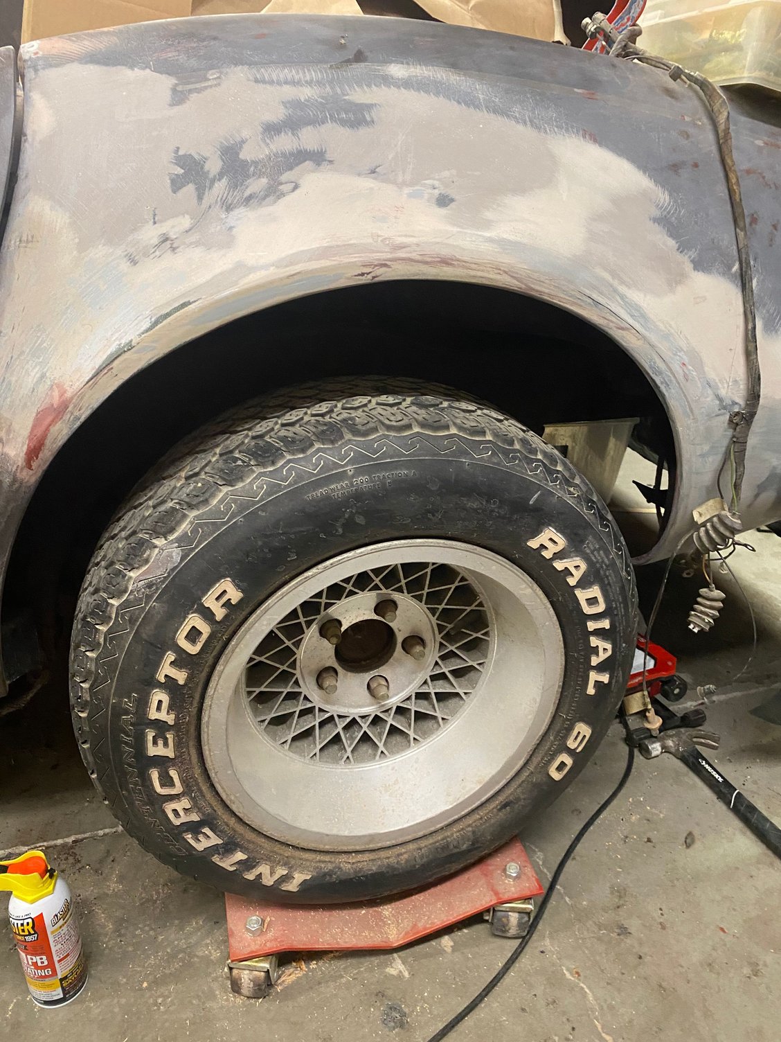 When I got this it was a non op that someone did stuff to and it is sitting very high. Tires are roughly 4-5” below the wheel well/ fenders.