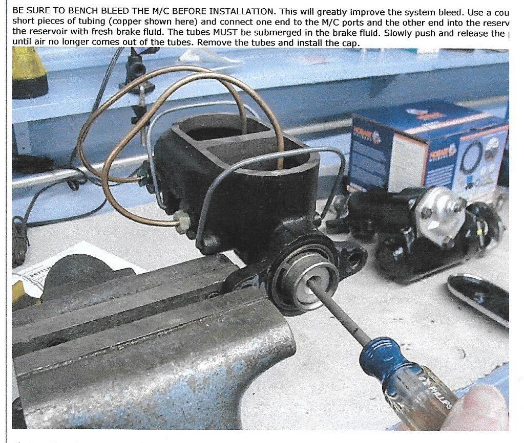 HI-guys its been a long time since I benched bleed the master cylinder I have the 2 tubes that attached to the master do you put the tubes in the fluid while I pump the master or keep them out and how long do I pump it for and will I need to bleed the 4. wheels again.THANK YOU for the help bob. 70. small block