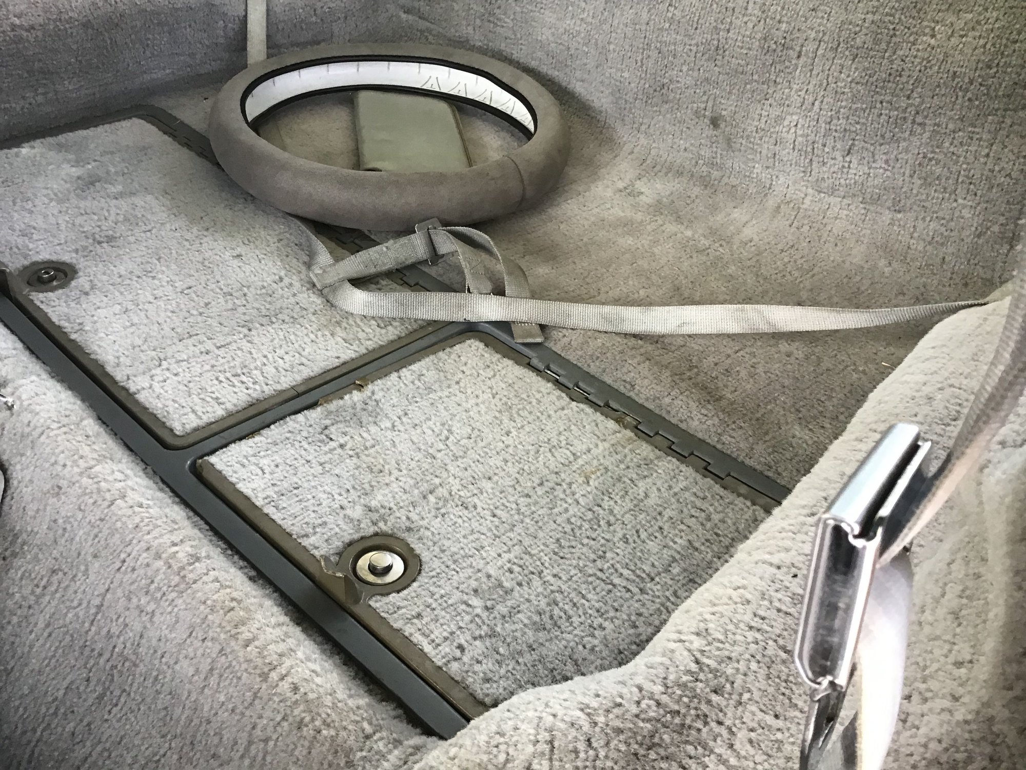 A couple things about your interior. First off, when new the rear compartment door frames were the same color as the carpet, but with age they've turned to the dark gray that your main frame is now, and the green gray your door frames are. I know because the same thing has happened to by plastic frames. Second, check the packaging for your carpet and make sure you were sold the 81-82 Slate Gray (silver gray, or just plain gray, depending on the vendor) and not 81 silver or even 80 gray, which was another different color gray carpet that came in 80's with the oyster interior. Third, colors fade and change with age, especially things like cloth and carpet. Anytime you're only replacing part of an old interior you should ask for a sample or swatch. Reputable companies like Al Knoch Interiors and Top Flight (Corvette America), the top two Corvette interior companies, will gladly send you a sample so you can see how well what they're selling now will match your existing interior. Finally, not all the cloth, vinyl, leather and carpet material used 40-50 years ago, is still available today, meaning that sometimes you can't exactly match the color shade, grain pattern, etc to what was originally offered.