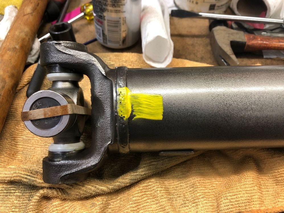 I had my drive shaft out to get the tranny out. I noticed what appeared to be an orange and green-ish band.