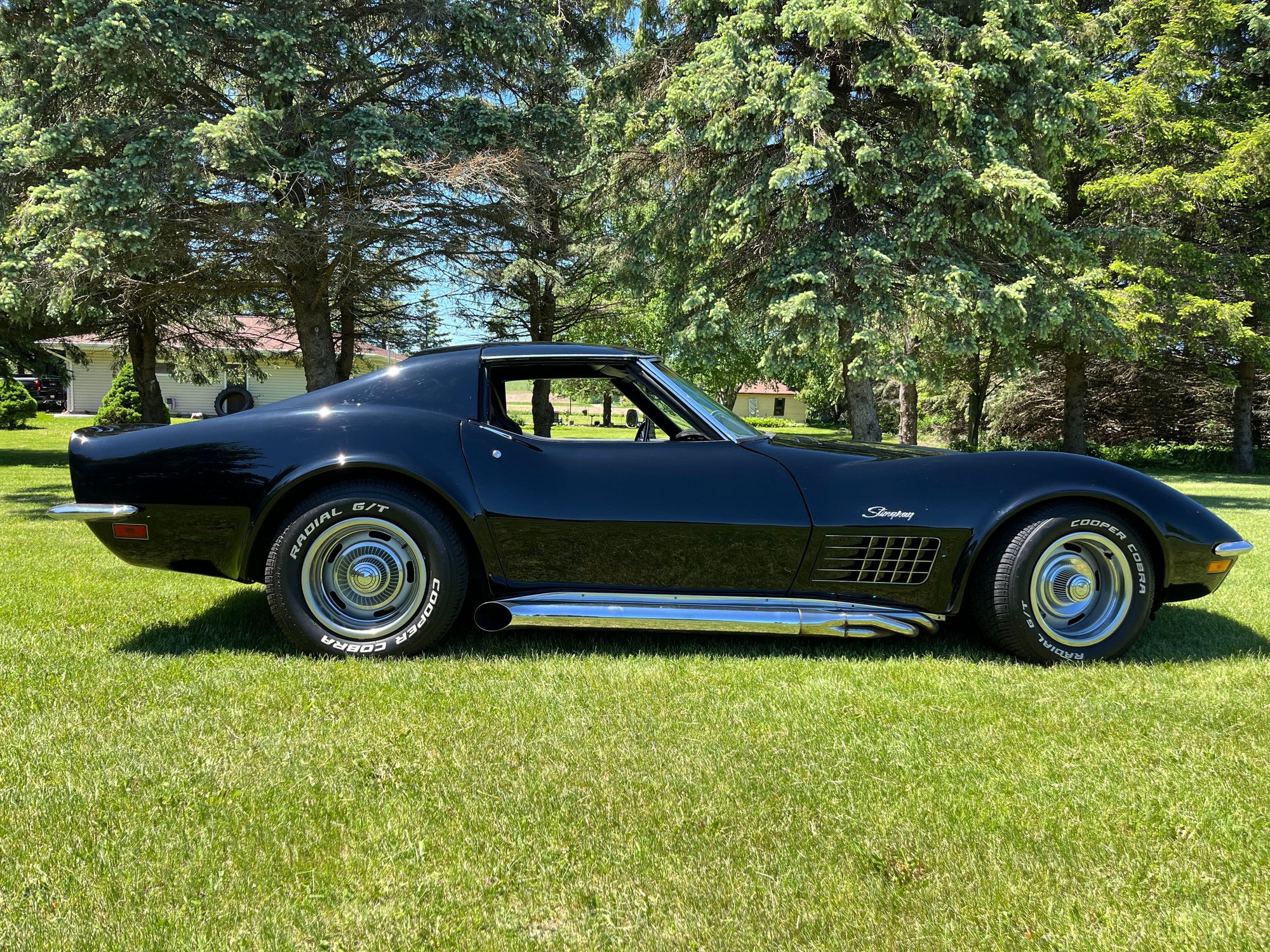 The Hooker sidepipes on a 1969 Corvette...still a great look, though racers never used chrome...