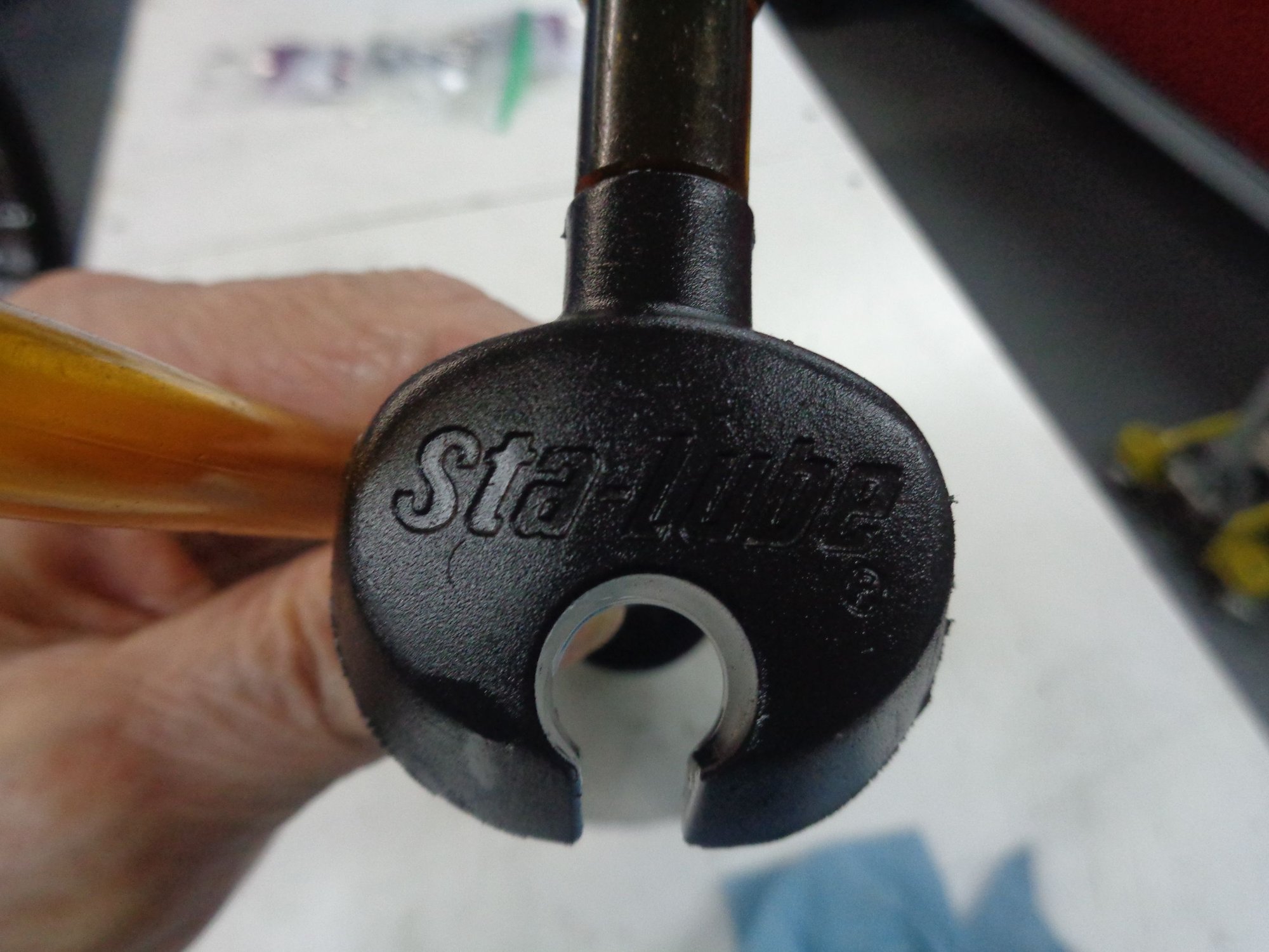 There are many shampoo / body wash / hand soap / sanitizer bottles that use a push down, finger operated pump. I have used these for this purpose with great success. My wife always has one she can spare. If you can't find one, get a cheap Harbor Freight oil can.