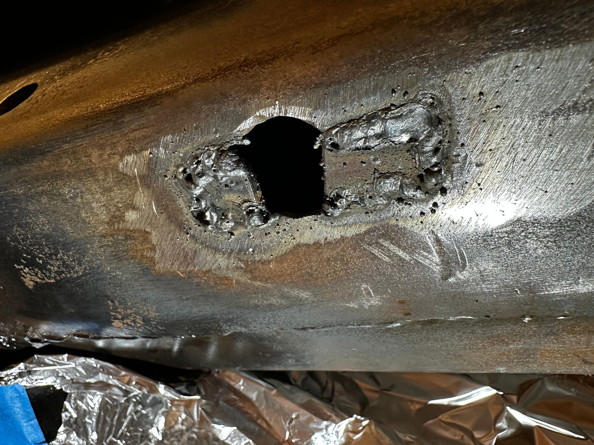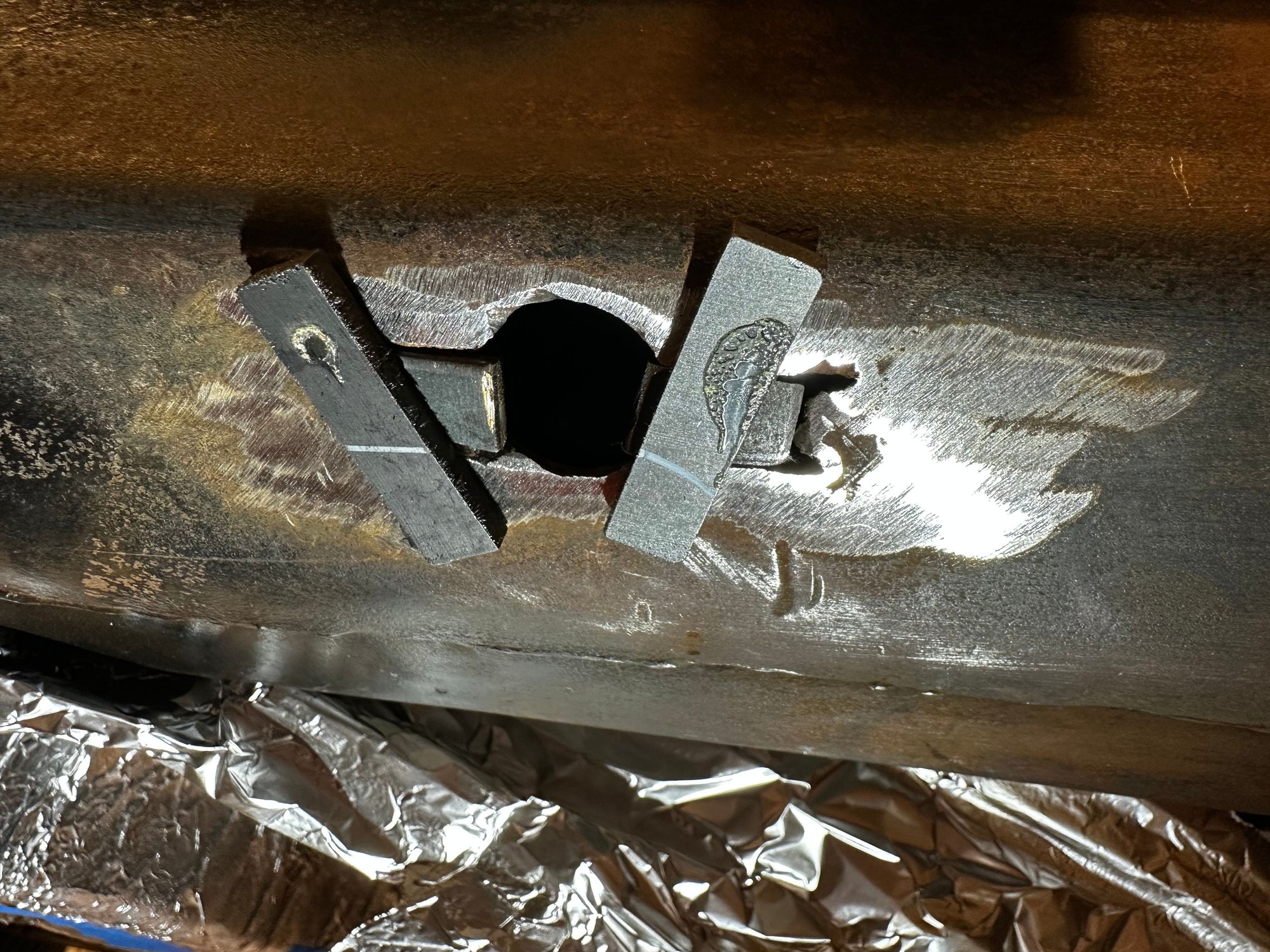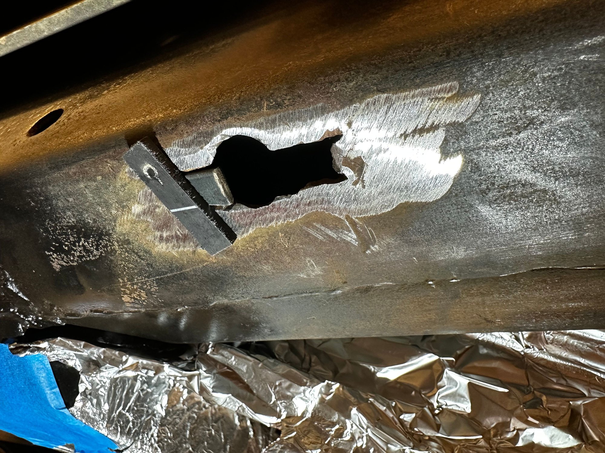 That will be great. I included another photo, from the RH side but they are both similar LH and RH. If you could also get a nice close-up of the forward hole that would be helpful too. Friend of mine is also sending me a template in the mail so that I can repair the damage done in the past and make these areas of my frame look correct again. The template will help me locate the center for the round hole that is supposed to be in that forward location on the frame.