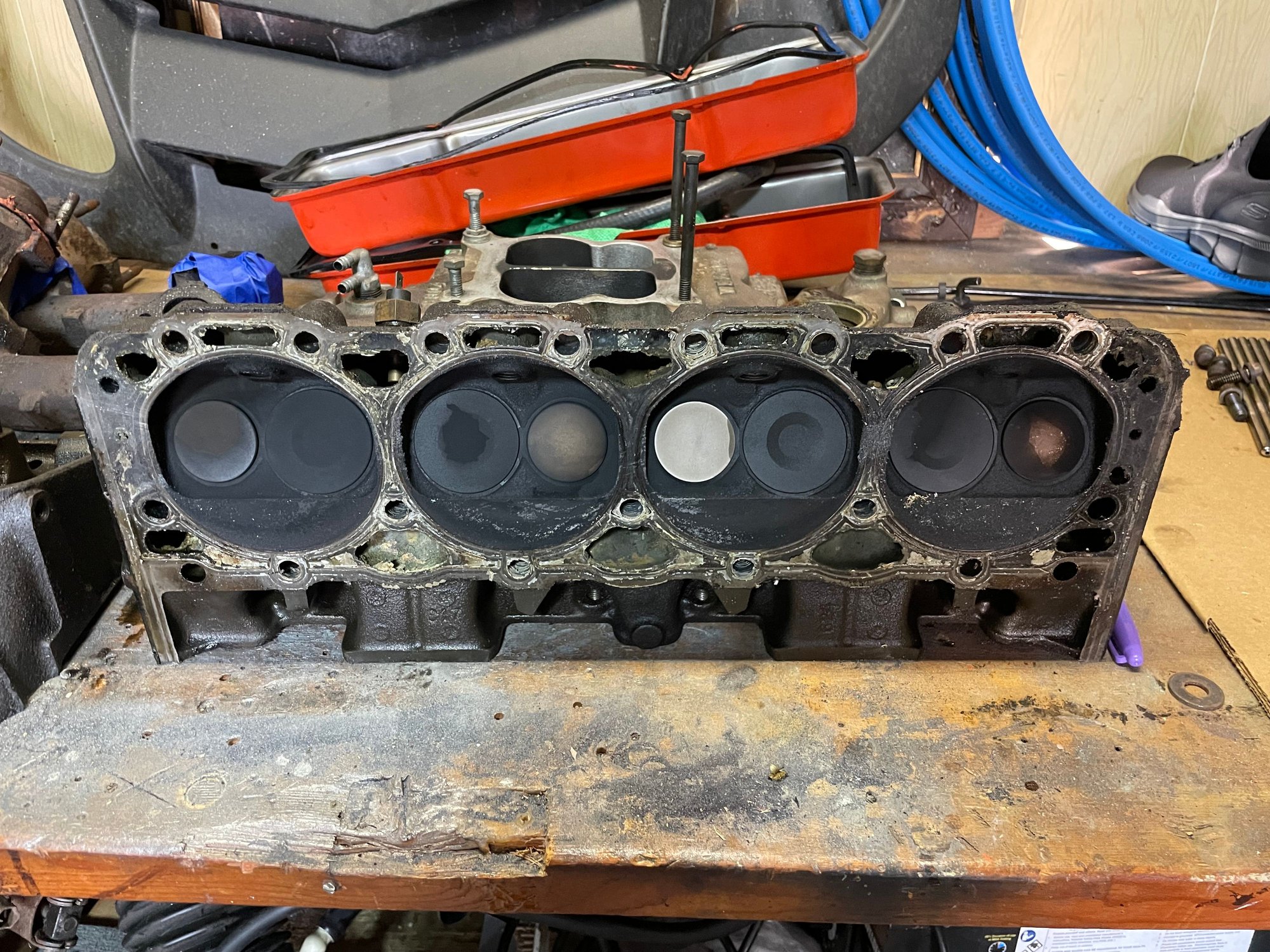 If the cylinder wall isn't cracked, do as tnothe member advised and buy quality aluminum heads---you'll notice a huge difference in performanc. Rebuild your carb or buy a4-barrel Edelbrock/Holley/Etc.