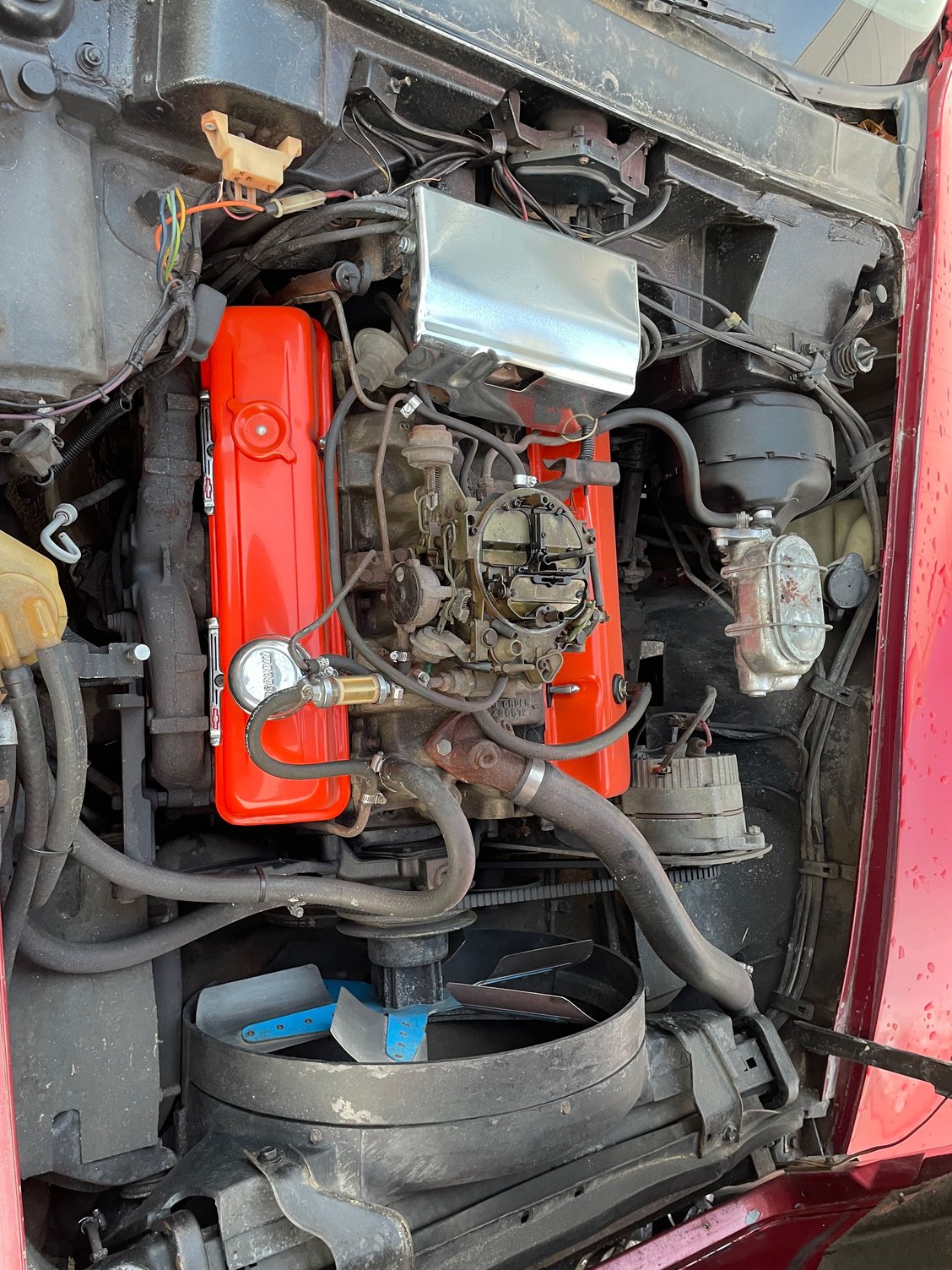 The hesitation could be from many different things. From retarded ignition timing to a bad accelerator pump. That Quadrajet looks to be from the early 80’s too, and probably has jets and rods more suited for a pickup truck. The correct carb number for your 1975 L48 automatic is 7045222, and would work wonderfully with your engine combination for hundreds less than an EFI conversion.
