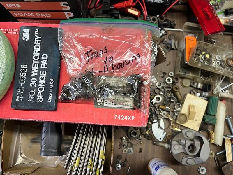 Today I spent at least an hour looking for a ziplock baggie with 4 transmission to bell housing bolts in it - these are not small bolts. The baggies with the bell housing to block bolts, flywheel bolts, and pressure plate bolts are there with the bolts and washers all wire-brushed and pretty. I considered I didn't put them in a baggie like I did all of the other bolts last summer when I pulled the engine out of my '67 so searched my miscellaneous bolt collection - more than once; I wondered if I dropped them into a solvent can to get de-gunked and forgot about them - again checked more than once; I went through all of the black/yellow boxes with any car parts in them at all - more than once; I checked the passenger floor and under the car, just in case...