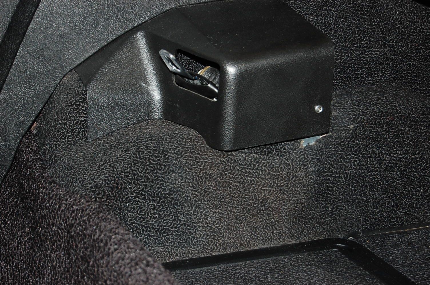 Here are photos of the shoulder belt retractor, the plastic cover for the retractor, and the trim on the top of the seat that the belt passes through.