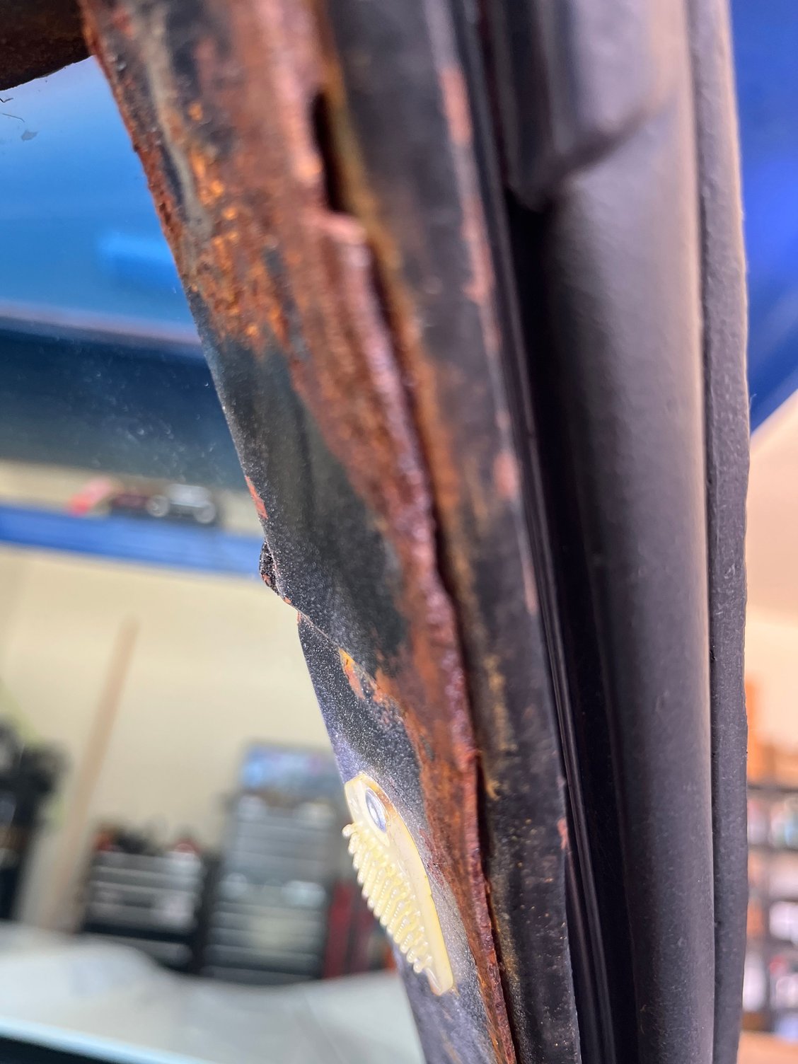 Behind the windshield, where it seals to the frame, where you cannot see it unless the windshield is out, you are certain to find multiple holes and water leaks, with that amount of visible rust.