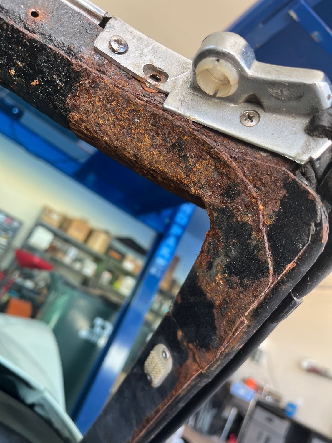 I think I know the answer to this, but thought I’d throw it out there just in case Here are pics of the windshield frame and behind the kick panels on a 75. There was considerable rust flaking behind the kick panel… Is this car cooked?