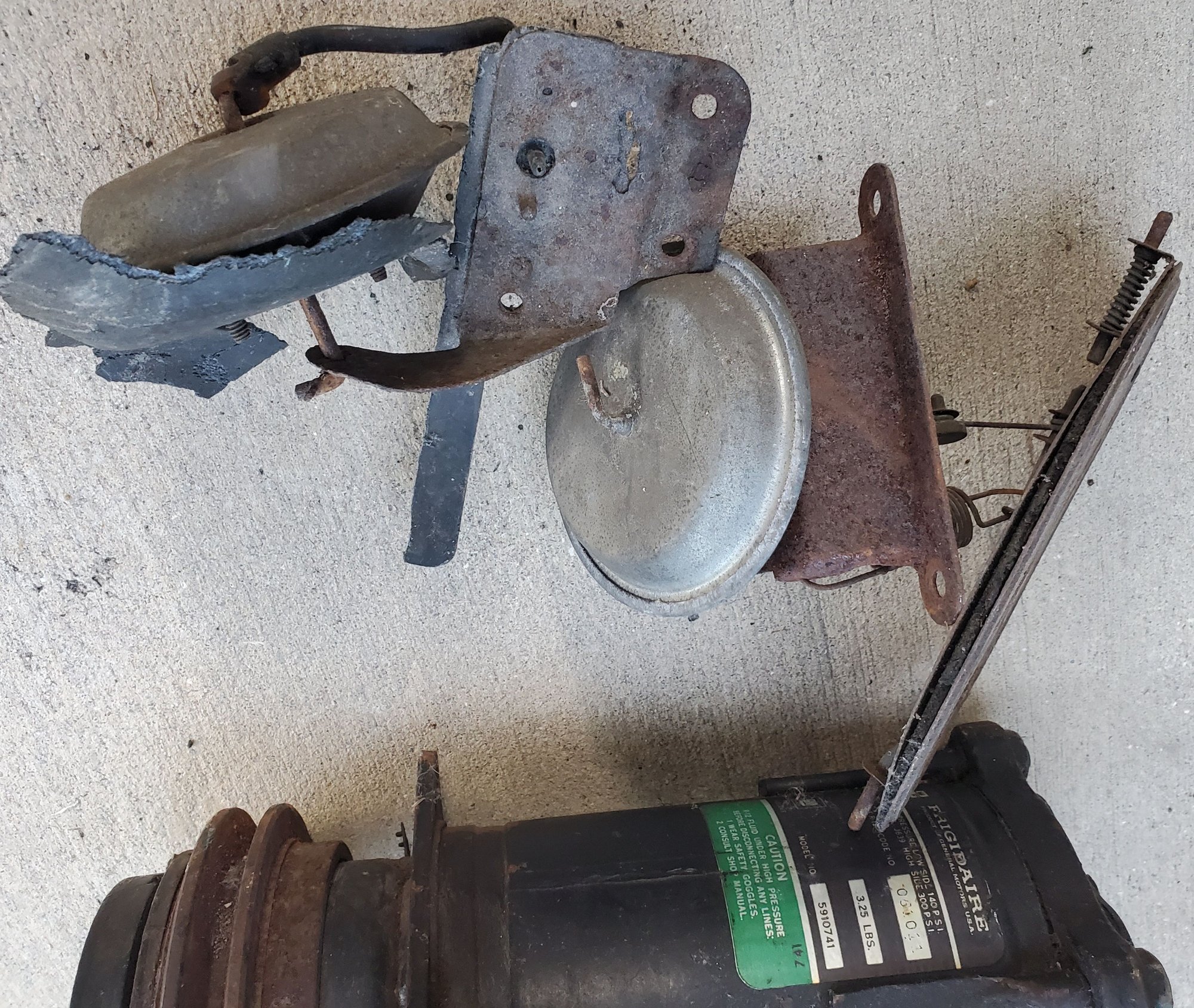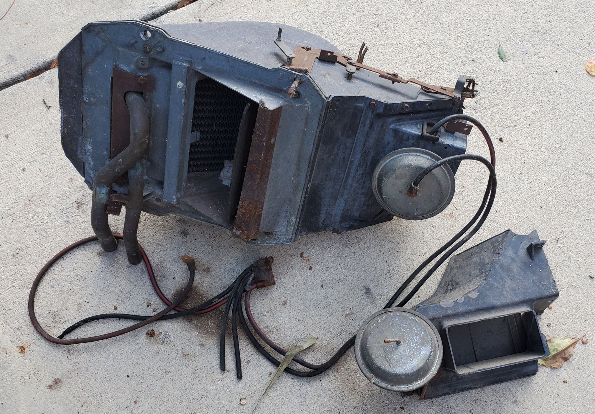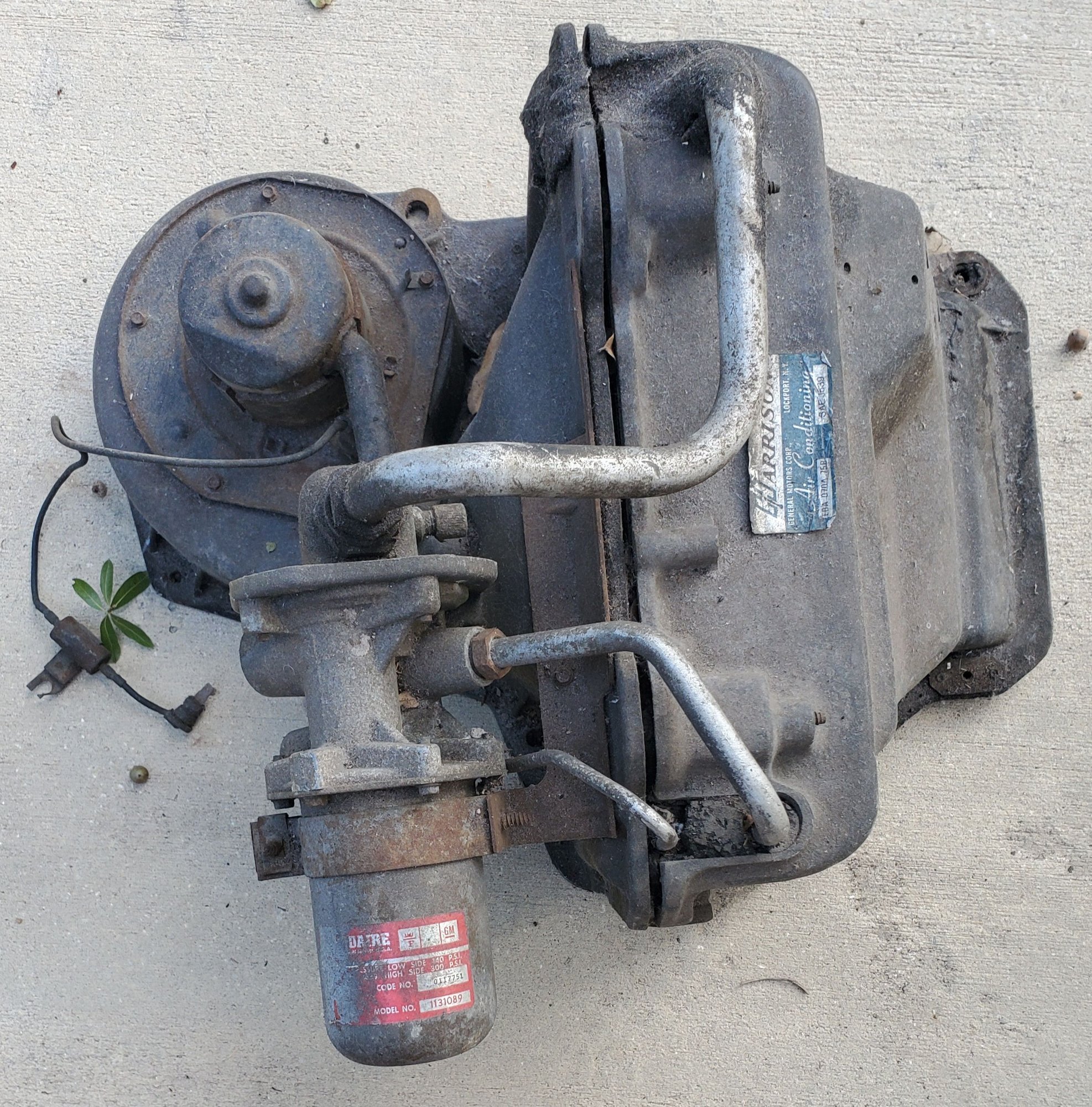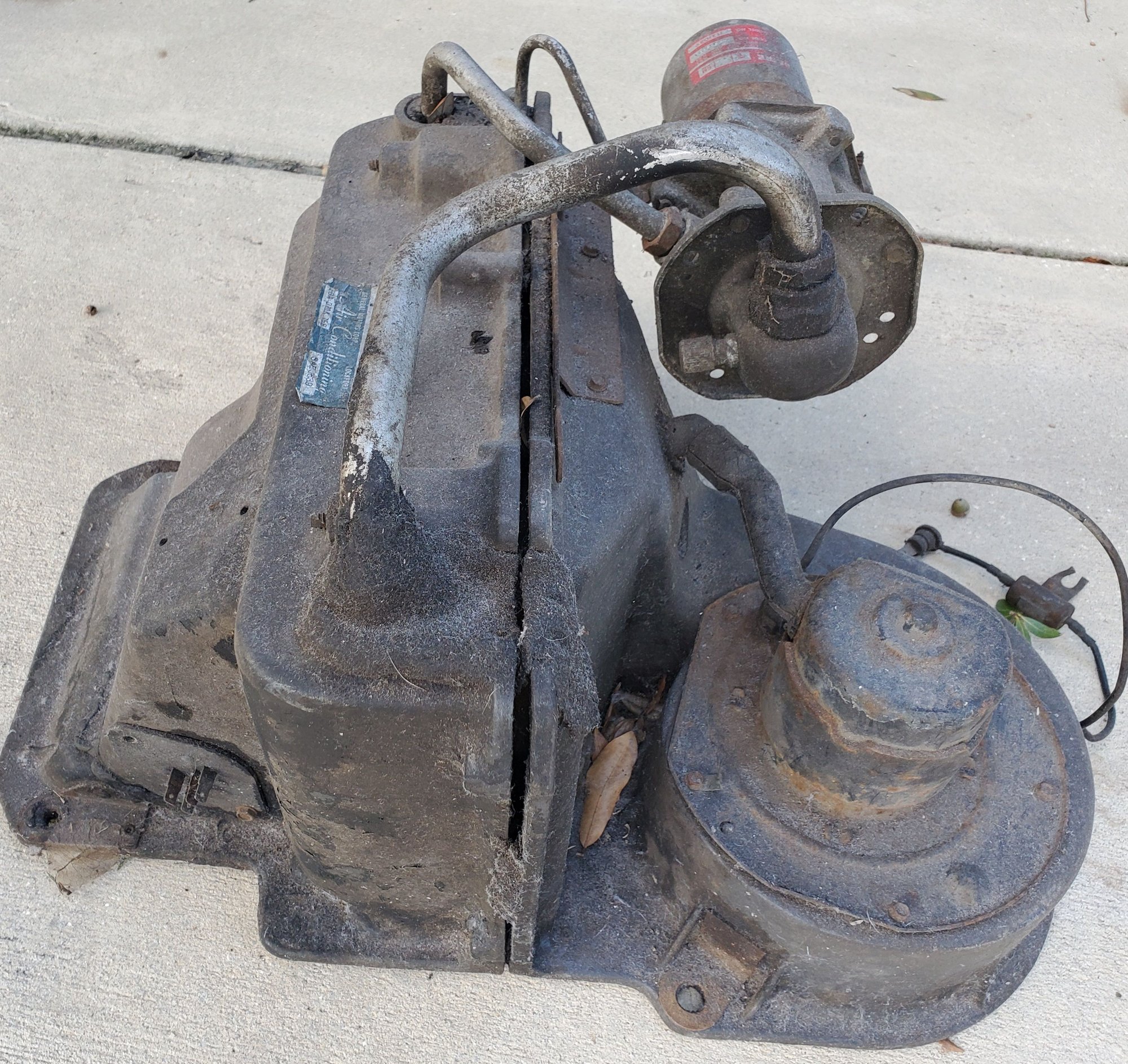 I am offering up a 1975 A/C system. Too much to ship, so free for local pick-up in Winter Park, FLorida. I can not speak to the working or not of any of the mechanical pieces, but there are a lot of good parts here for someone who may be missing some, want original and are willing to clean up and restore them. I noticed that one of the interior plenums has a crack, but the structural integrity is intact. It can definitely be repaired with some epoxy or plastic weld material. PM me if you have need or a desire. Must take all, I need the room