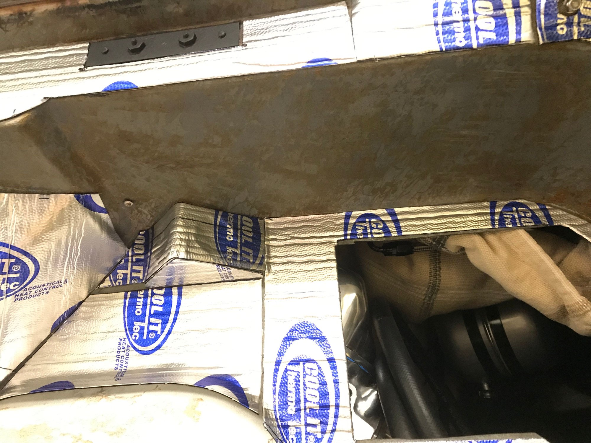 The reproduction oem upper firewall insulation pieces are no longer available from any vendors so I’m making my own using Thermo Tech Cool It Mat.