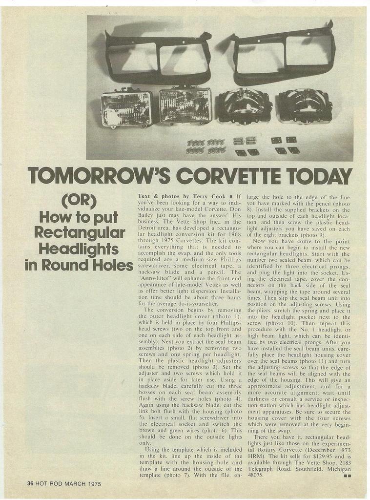 I was a little surprised to see the square headlight conversion for the Stock Pop ups in the current Corvette Central catalog. Part Numbers 143208 143215 and 14217 No Prices