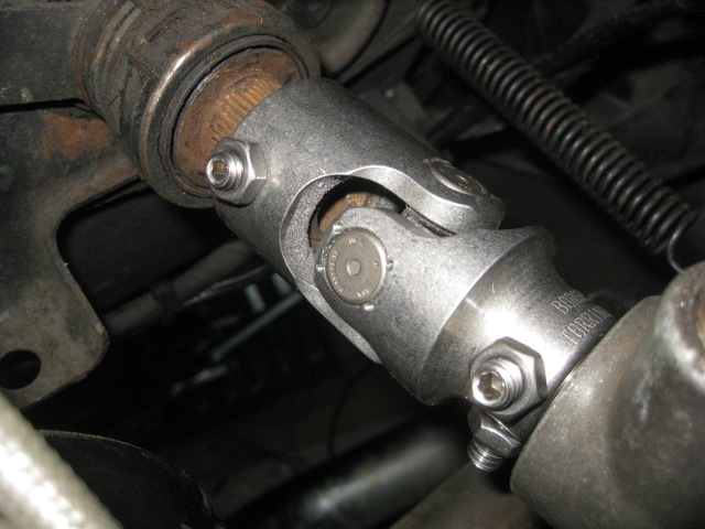 I believe I have read somewhere that those solid joints cannot be used with our cars because the body sits on rubber mounts and there is too much movement, loading the lower bearing in the steering column.