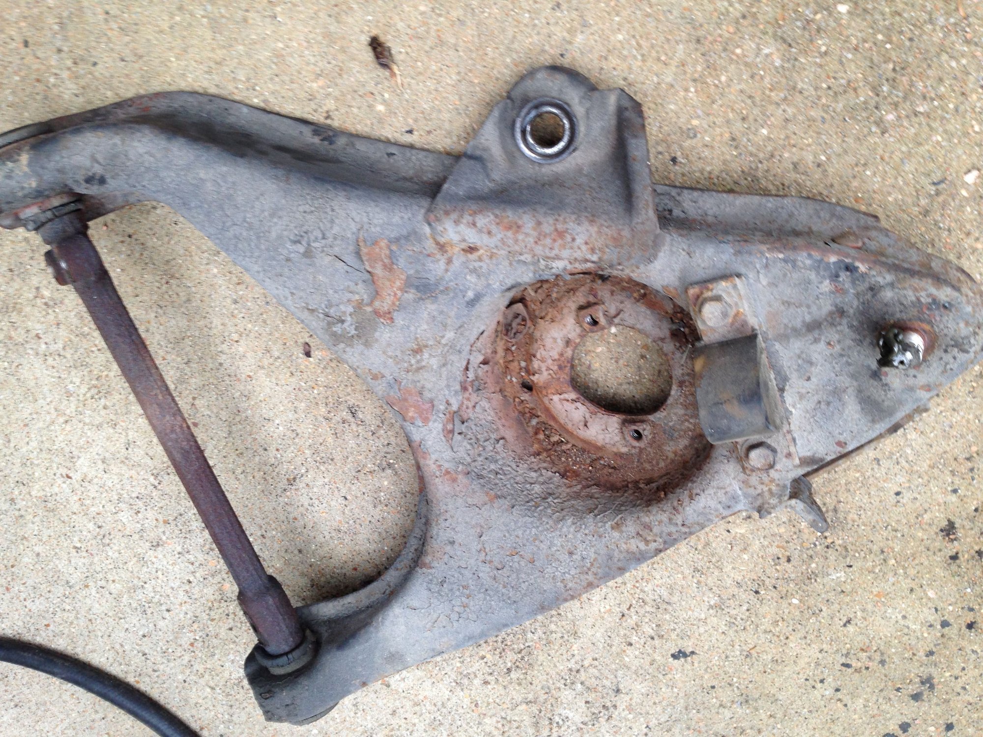 Yesterday I began rebuilding my front suspension on my 82 vette. I had bought the minor rebuild kit from ecklers that includes the ball joints and bushings for teh control arms. Well, when I pulled the lower control arm out, it looked like this. The tight side of me wants to just clean it up and repaint it. But something tells me this has seen it's better days. Also, if I blast it, and powdercoat it, I might wind up having as much invested that to just buy a new one off ecklers that already has the bushings and ball joint installed (about $180 each).What would you do?