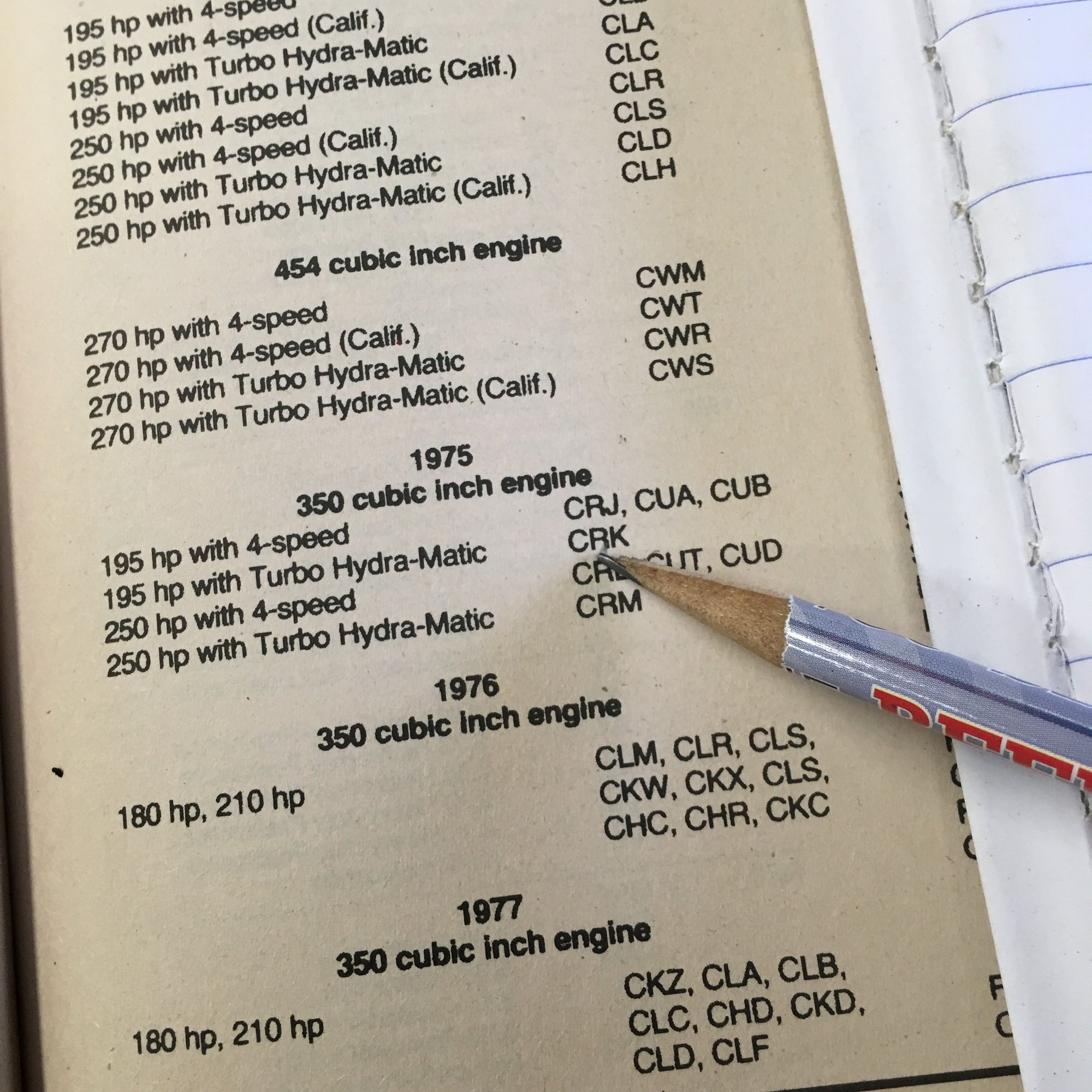 CHB 1975 350cu/in a/t, fed L48 165hp Corvette