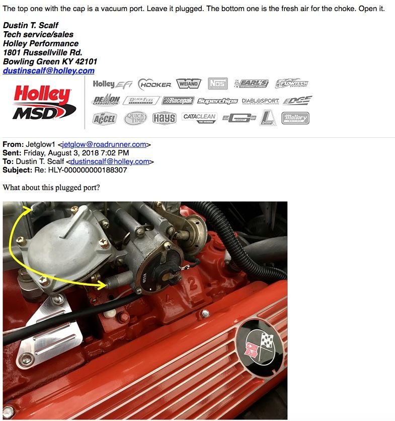 Wes, if you connect the two points in this picture with a hose you will have fresh, filtered air flowing through the choke. The carb has an internal passage that draws air from the choke housing, this will complete the connection to help cool the electric coil in the choke housing. Of course to do this you will need to ensure the fitting on the choke housing is not blocked off.