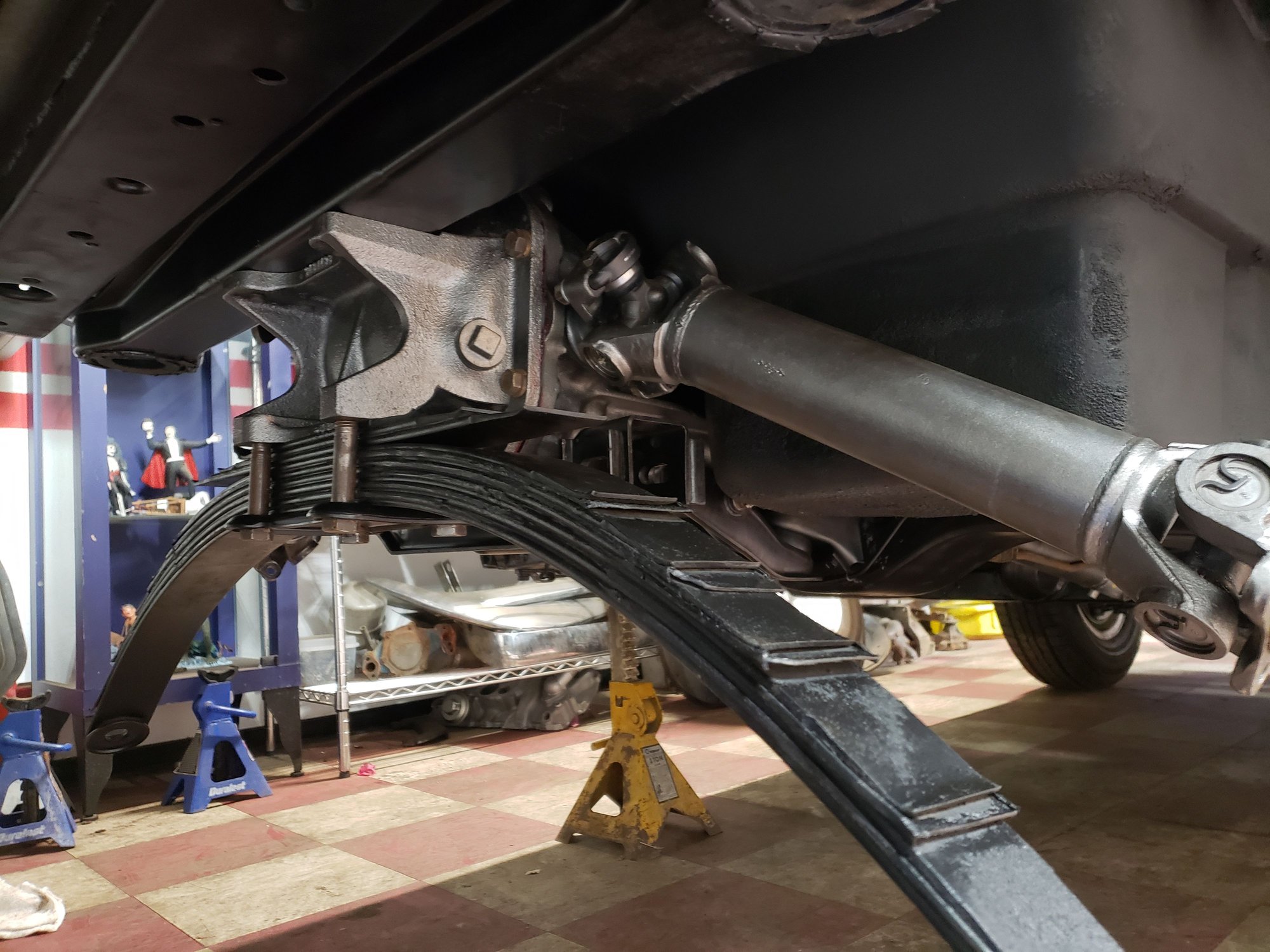 today to rebuild the parts when I remove my differential to replace a loose C clip on the end of one side yoke. No point in putting the 50 year old rubber parts back on. In about a half hour I got the spare tire carrier and leaf spring off, then called it quits for the day. Hope all goes as smoothly tomorrow with no frozen bolts or problems. Everything gets polished and painted before re-installing, so I can take my time. Hopefully this is the last under-car job I need to do.