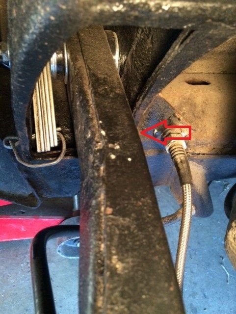 Looks like I will be taking the TA off to check if it is bent. I thought there was a bend about 8 inches from the bushing (see arrow), but from the photo posted in your link, it appears that is supposed to be there. I will have to check if the flat area where the four studs fasten the bearing housing has been bent. The PO put 20 inch rims on the back, so I don't know what he may have done to make them fit.