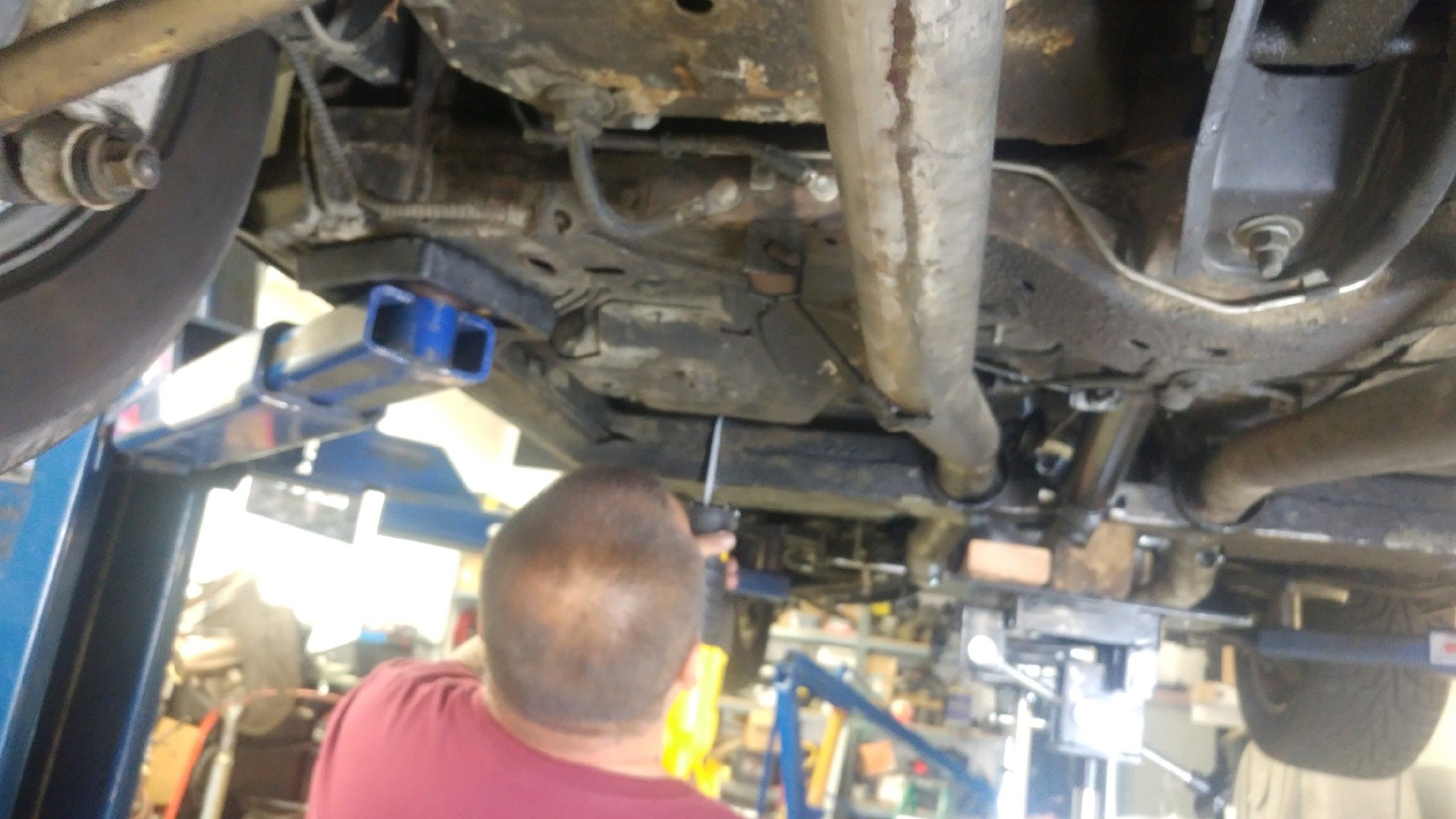 Cross member cut out, but still hanging up on the exhaust pipes.