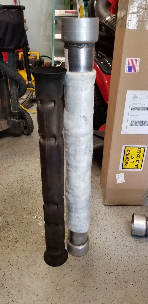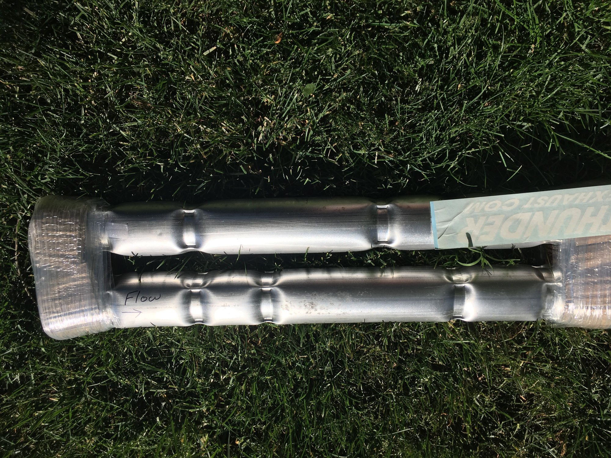 The cores are louvered, as are the sweet thunders, but the two are nothing alike. The sweet thunder has very large louvers and less of them, while the Classic Chambered have much smaller louvers, with many more of them in a spiral pattern. In addition they are wrapped in fiberglass exhaust packing to take the edge of a little. The 3" cores are impressive and look like they will really flow.